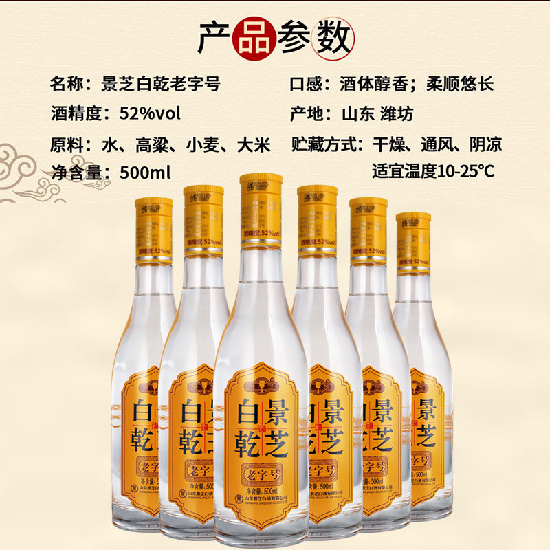 📚 景芝老白乾黄盖52度500ml*6瓶整箱白酒粮食酒宴请送礼自饮