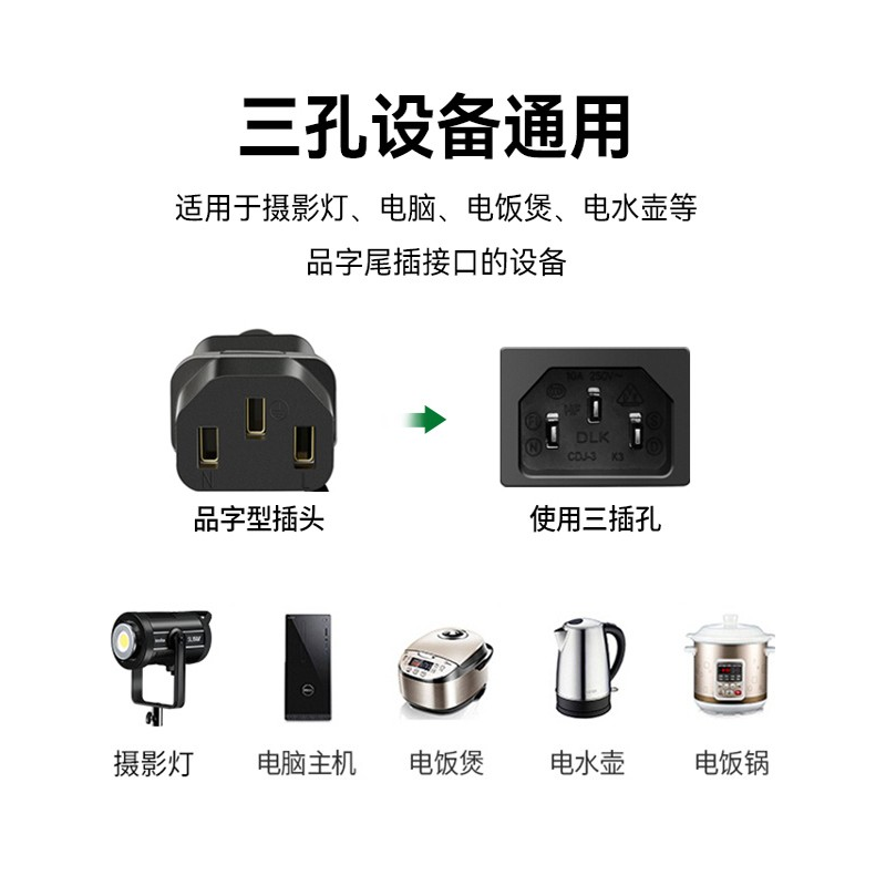 📚 适用于4米闪光灯电源线1.5米 国标三相电源线 影室灯神牛 金贝补光灯电缆线三孔摄影灯电脑品字插头 摄影器材