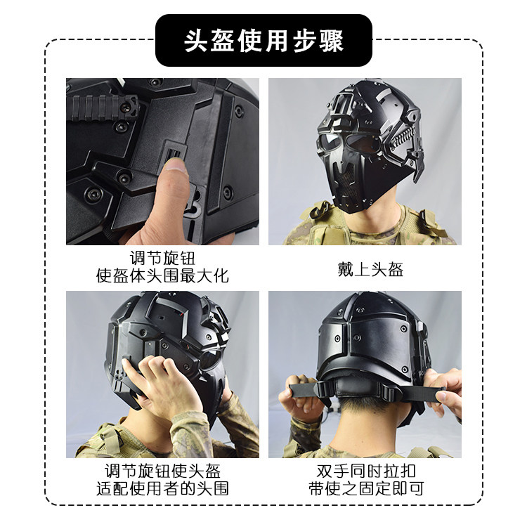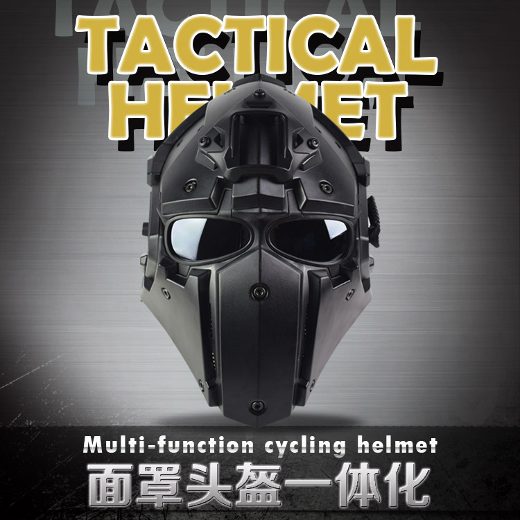 📚 户外骑行战术头盔 包头式头盔面具一体 特种兵CS野战防护全脸面罩