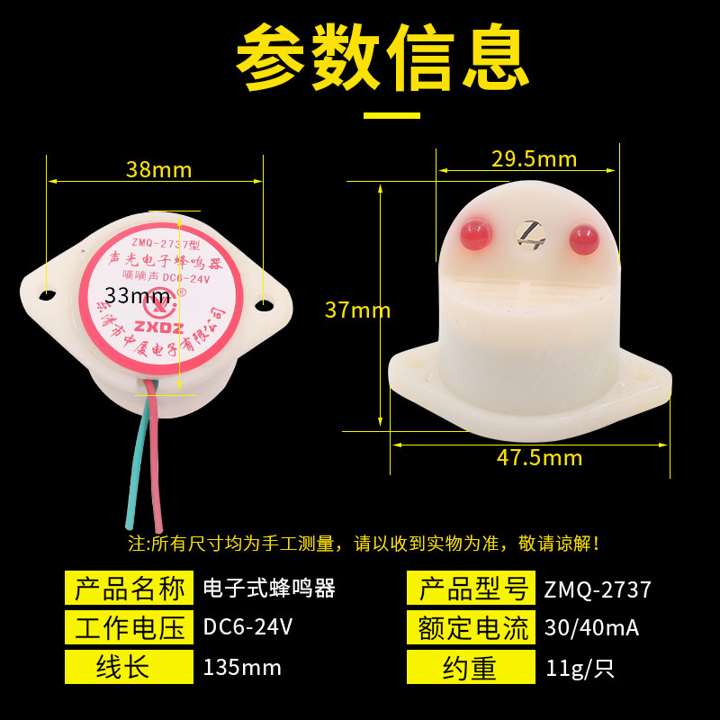 📚 小型蜂鸣器2737报警器声源ZMQ-2737滴滴声6V 12V直流24VDC讯响器