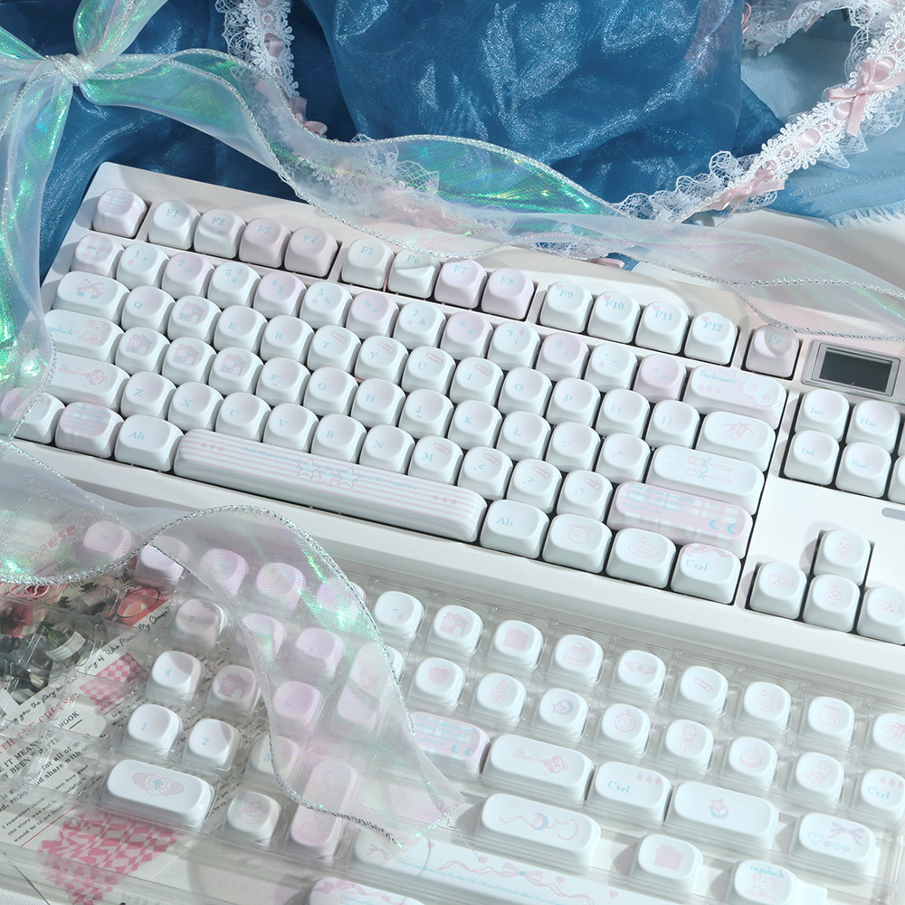 📚 130键奶霜moa高度键帽圆润可爱少女pbt热升华浅粉色适配机械键盘