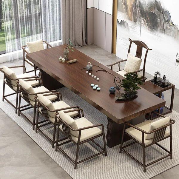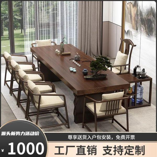 📚 禅意功夫茶几桌实木大板茶桌茶台一整套办公室家用客厅茶桌椅组合