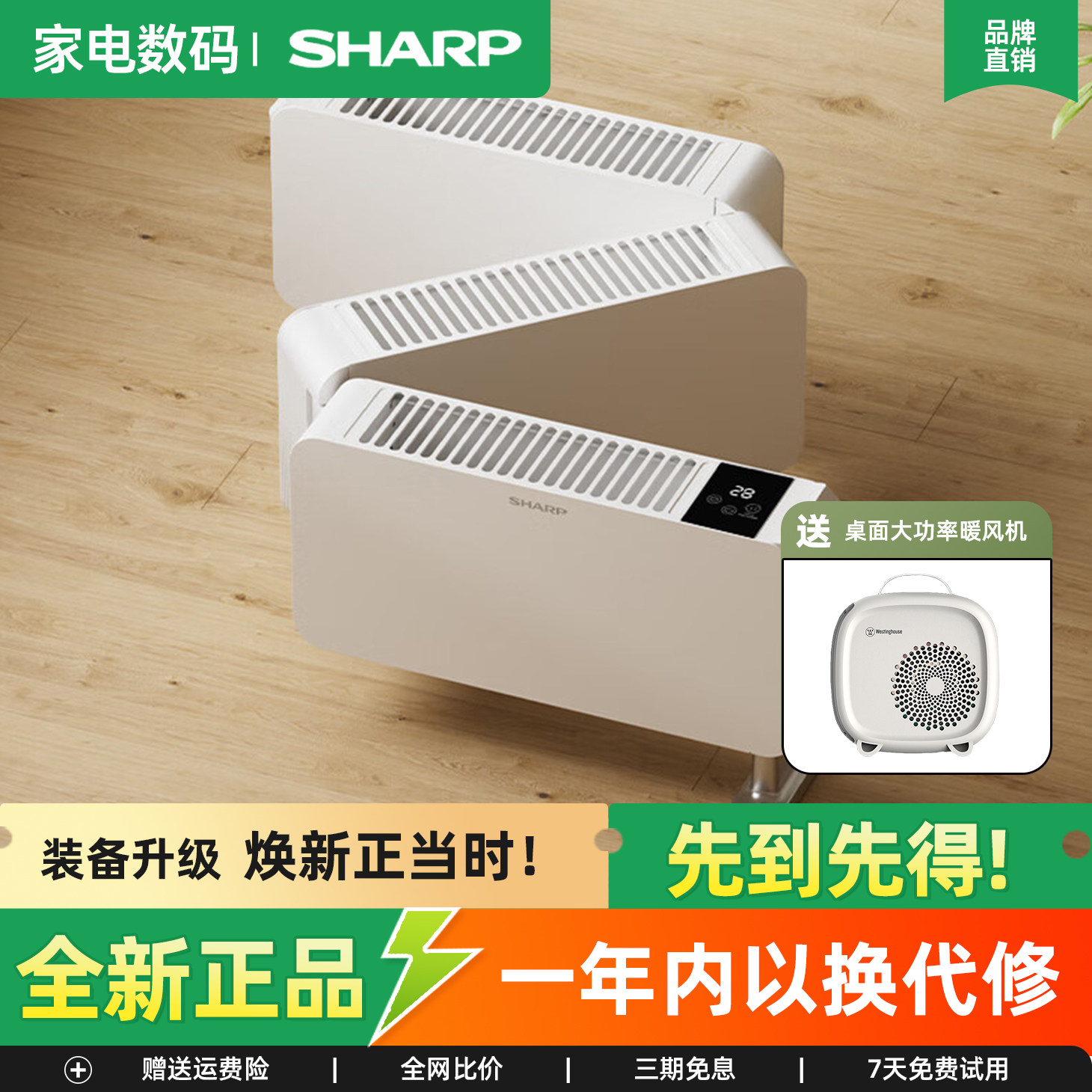 📚 夏普折叠踢脚线取暖器大面积家用净化节能电暖气语音石墨烯暖风机