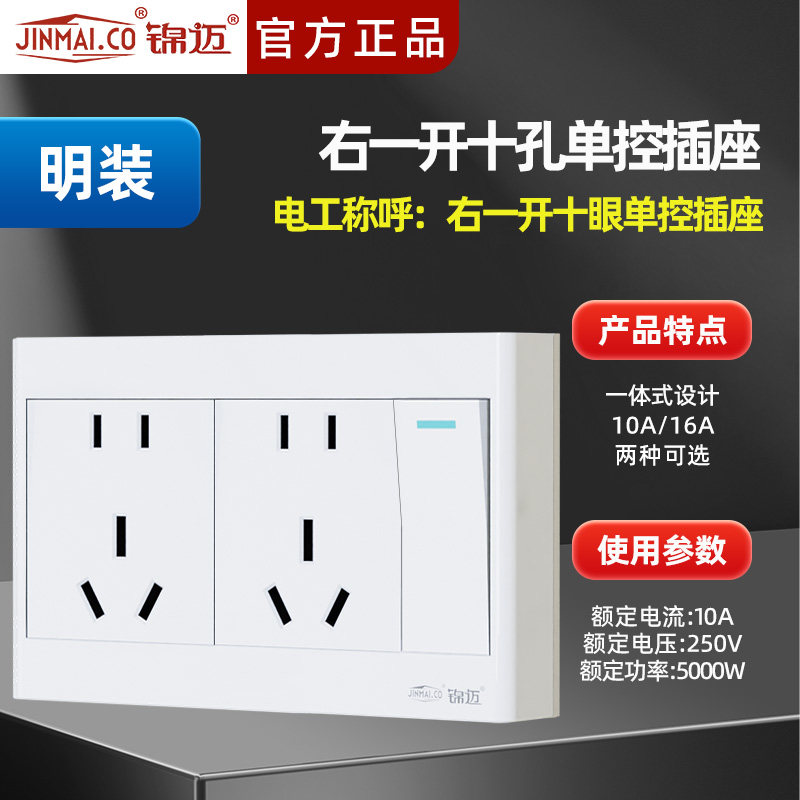 📚 明装插座一开十孔两开关插座面板1开单双控10孔3开15孔插座明线盒