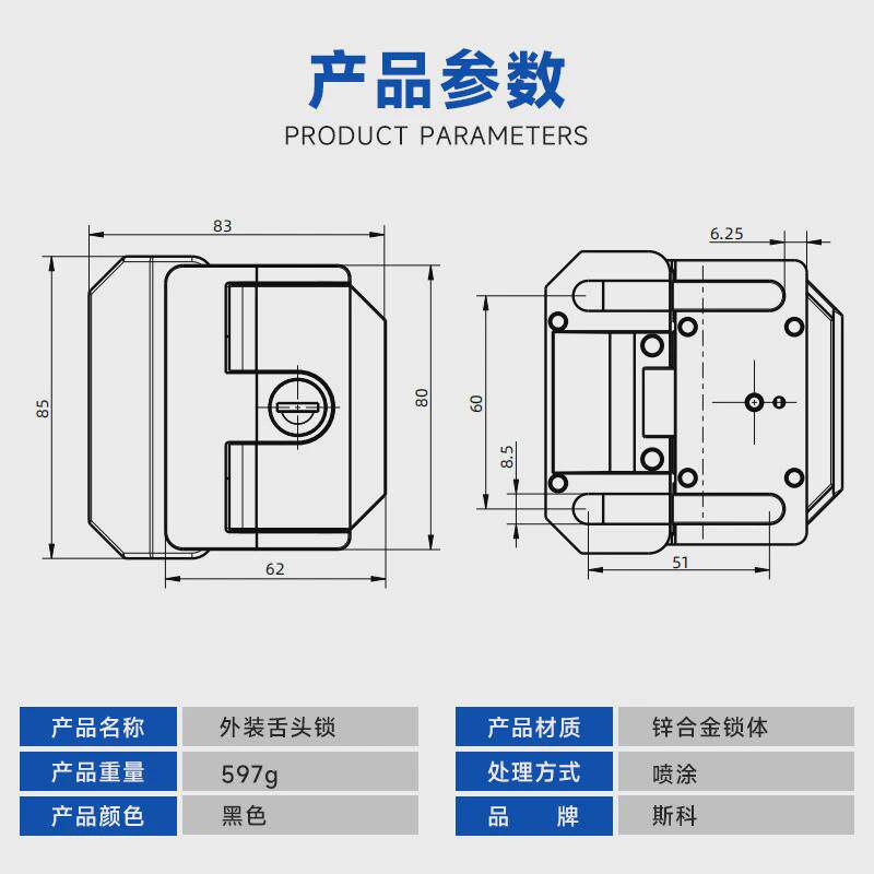 📚 斯科外装舌头锁工业锌合金碰撞搭扣移动器材加厚外装门锁锁a7872