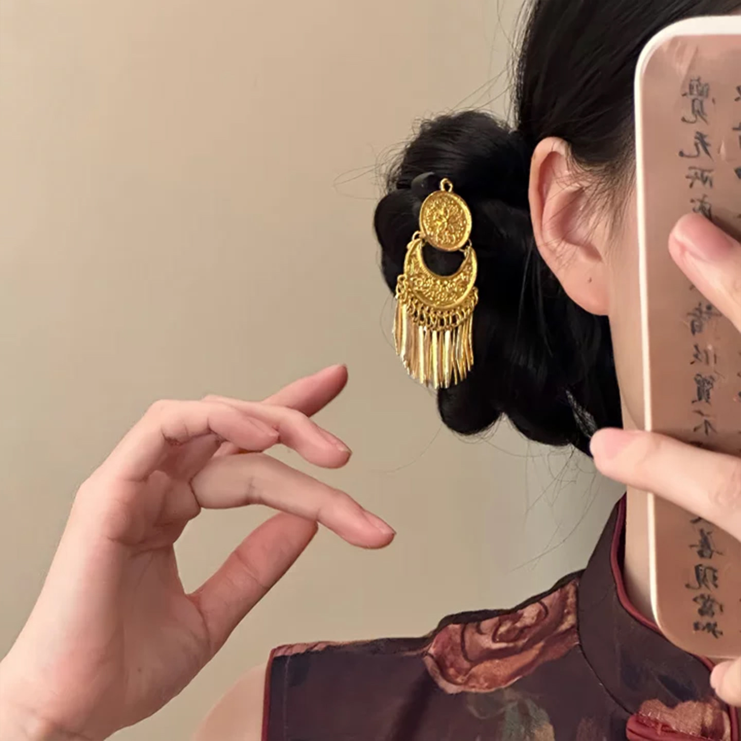 📚 山沐手作「日月承辉」复古金色流苏发簪女新中式古风簪子旗袍头饰