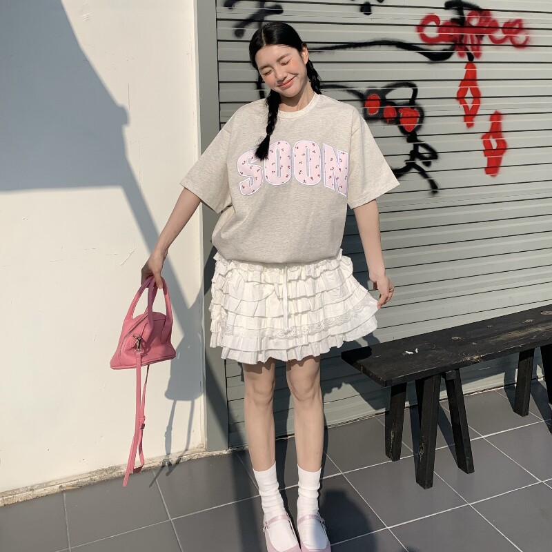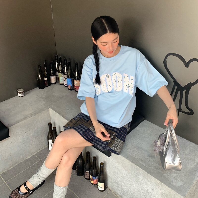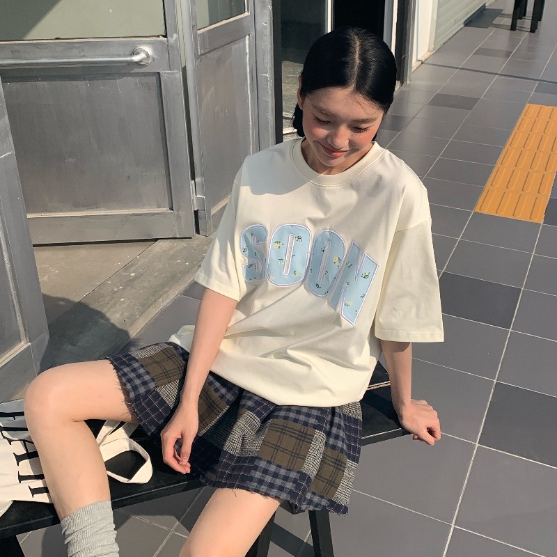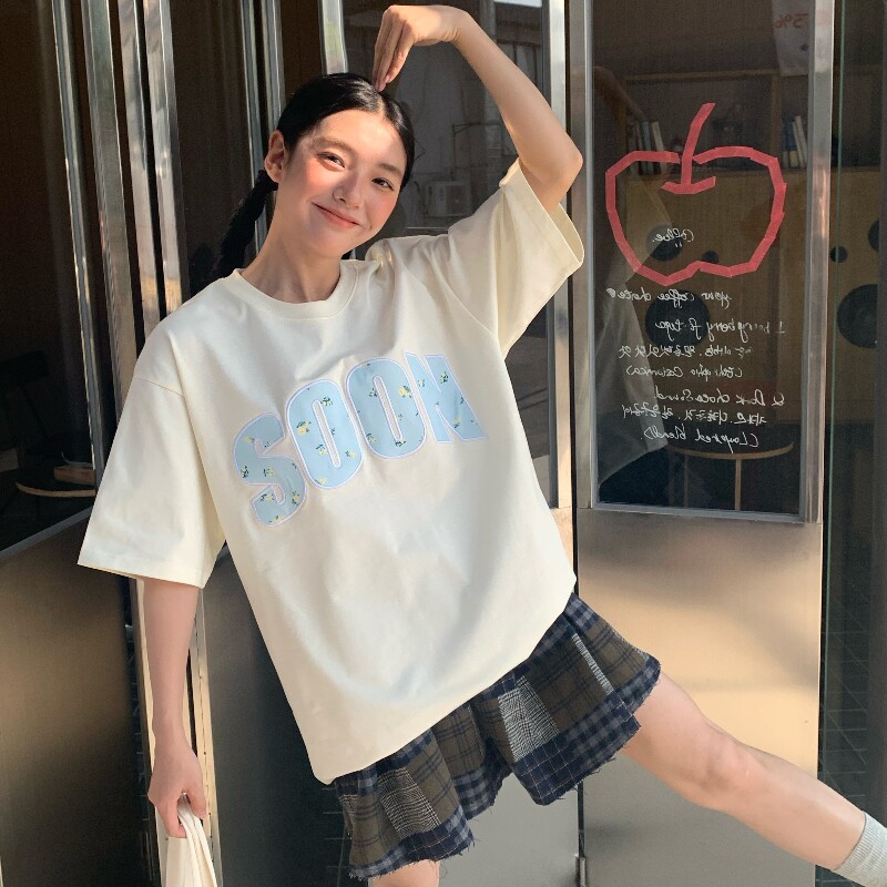 📚 KHIAN SOON夏季新品国潮牌贴布绣碎花T恤短袖情侣男女宽松打底衫
