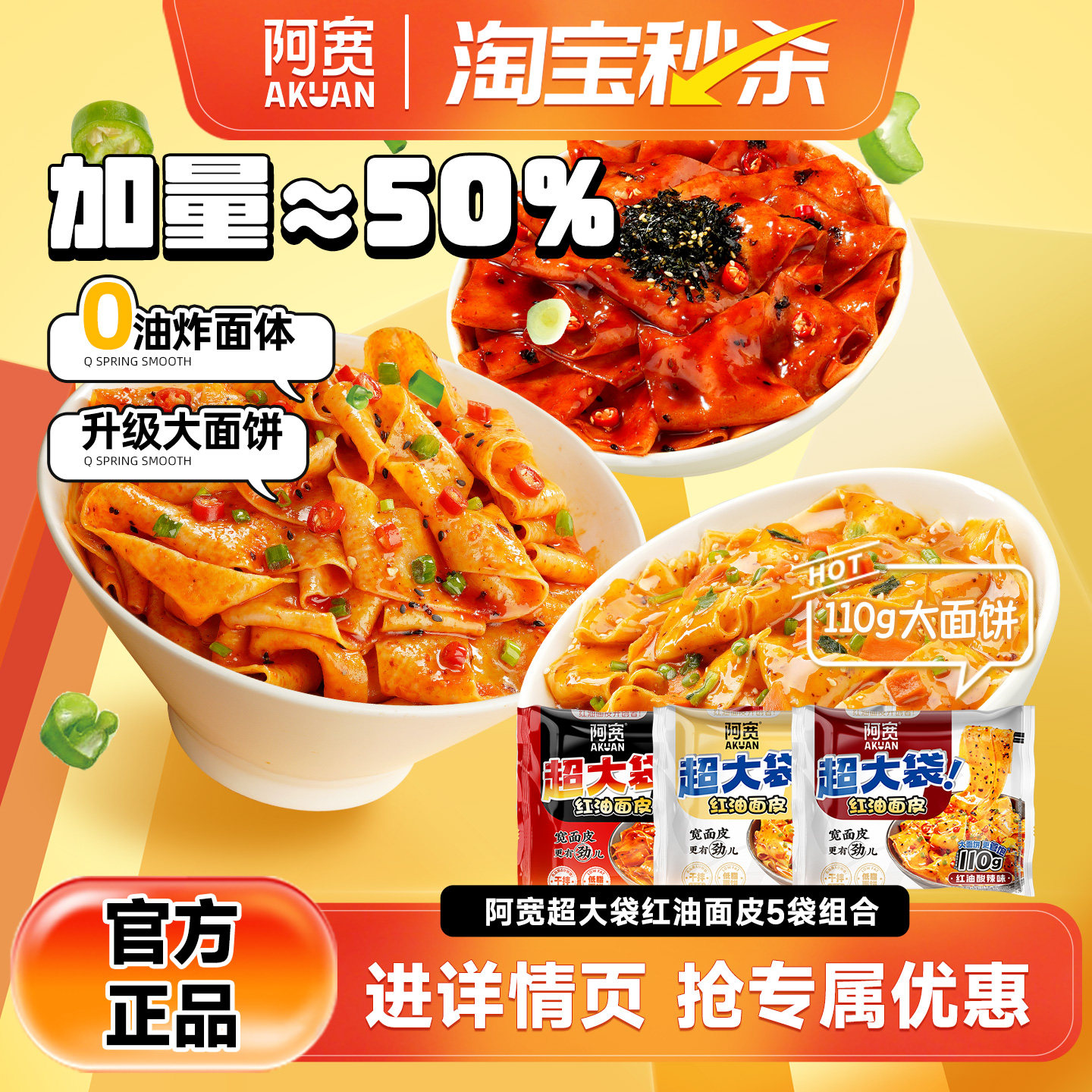 📚 【超大袋】阿宽红油面皮big版超大袋泡面火鸡干拌面方便面速食