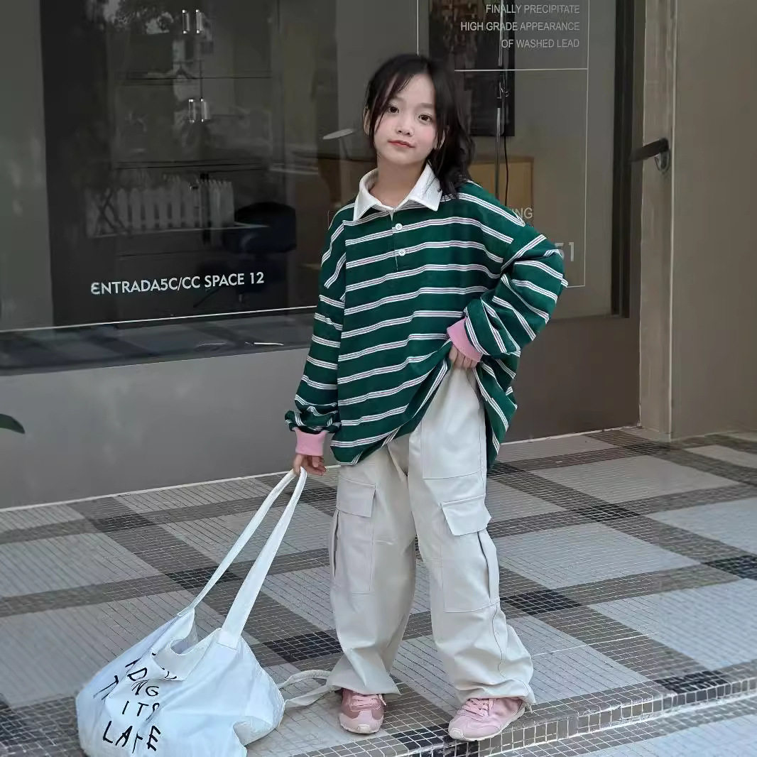 📚 2025秋季童装儿童中性款米灰色休闲工装裤中大童女童时尚宽松裤子
