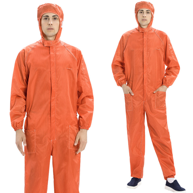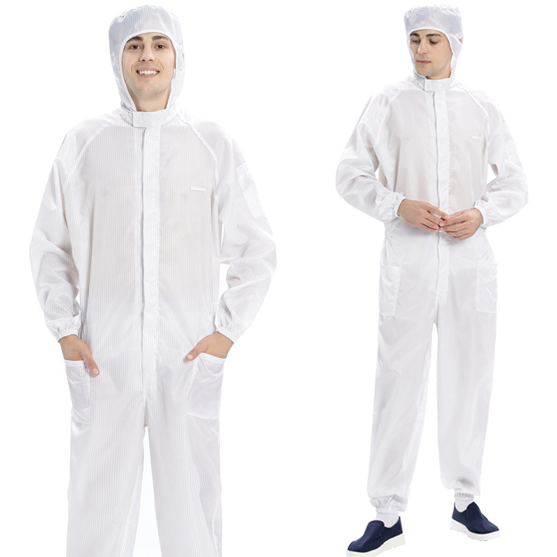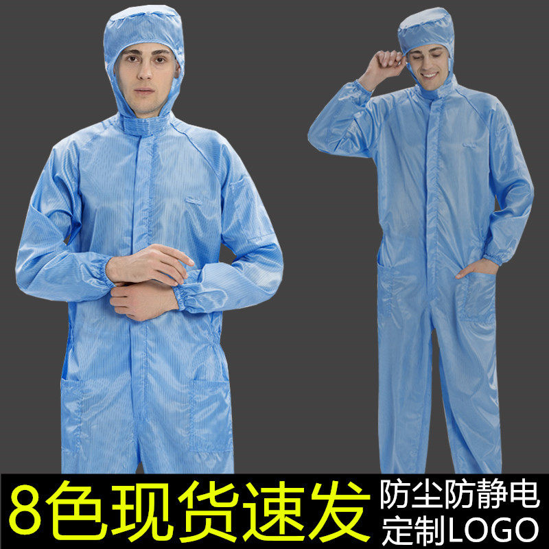 📚 连体无尘服防静电连体工作服加口袋款防尘洁净服连帽喷漆防护衣男