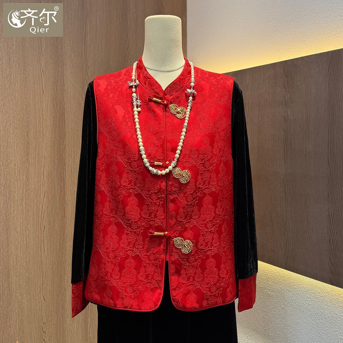 📚 新中式马甲背心女早春新款复古盘扣重工葫芦提花缎国风马夹半身裙