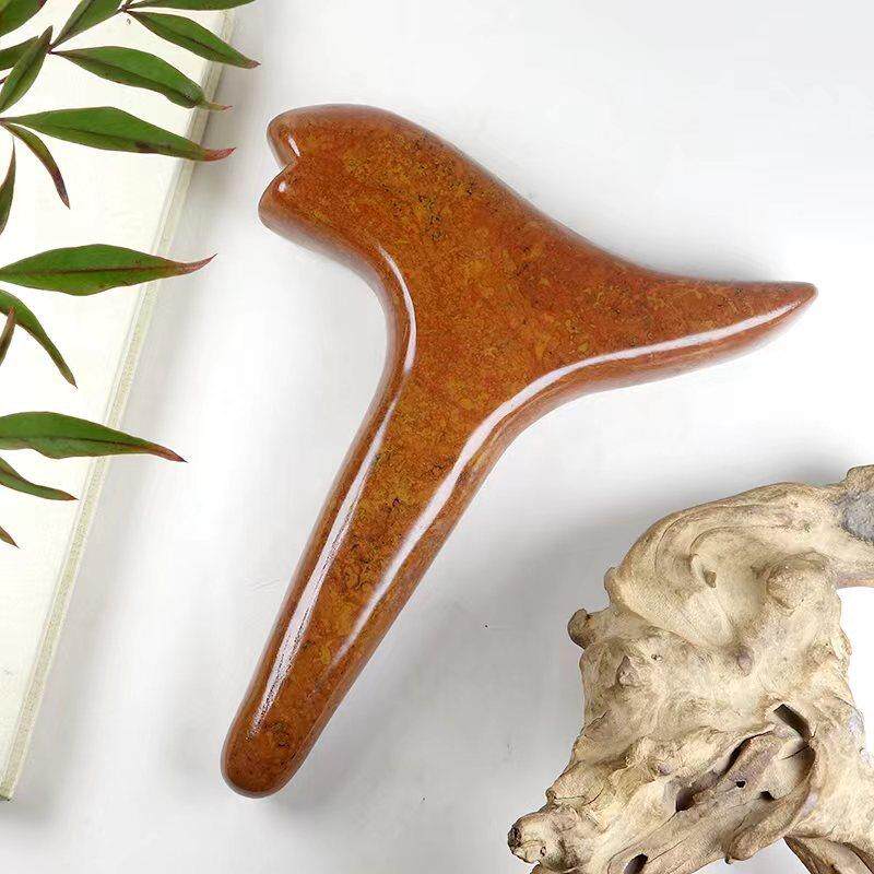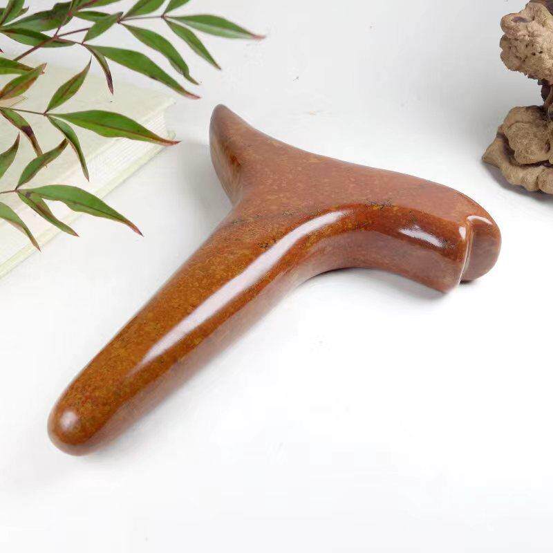 📚 三角按摩捶泗水砭石刮痧板虎口按摩锥红砭石燕尾按摩锥