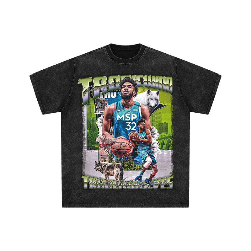 📚 球星T恤美式水洗宽松嘻哈重磅短袖KAT卡尔安东尼唐斯森林狼尼克斯