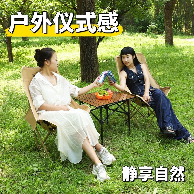 📚 笃行者高靠背沙发椅午休椅聚餐露营摆摊便携式月亮椅果绿色樱花粉