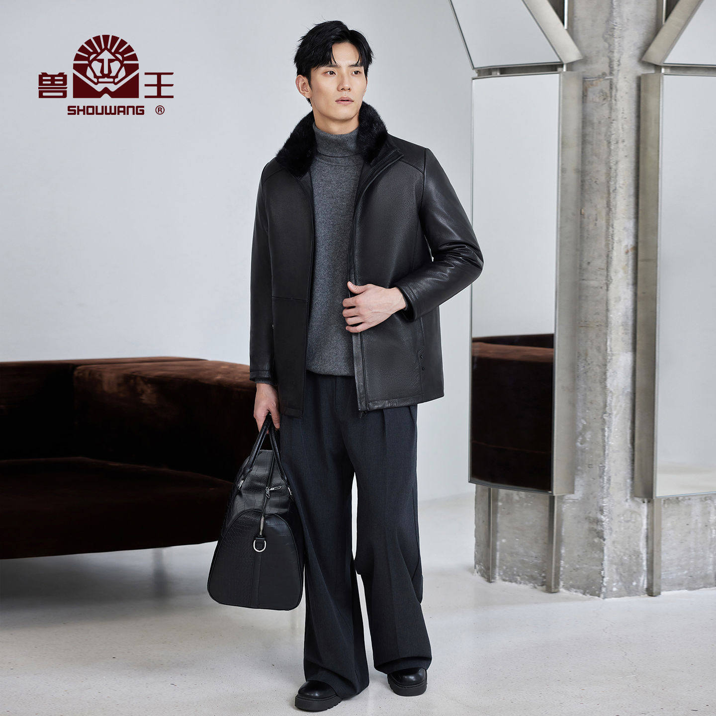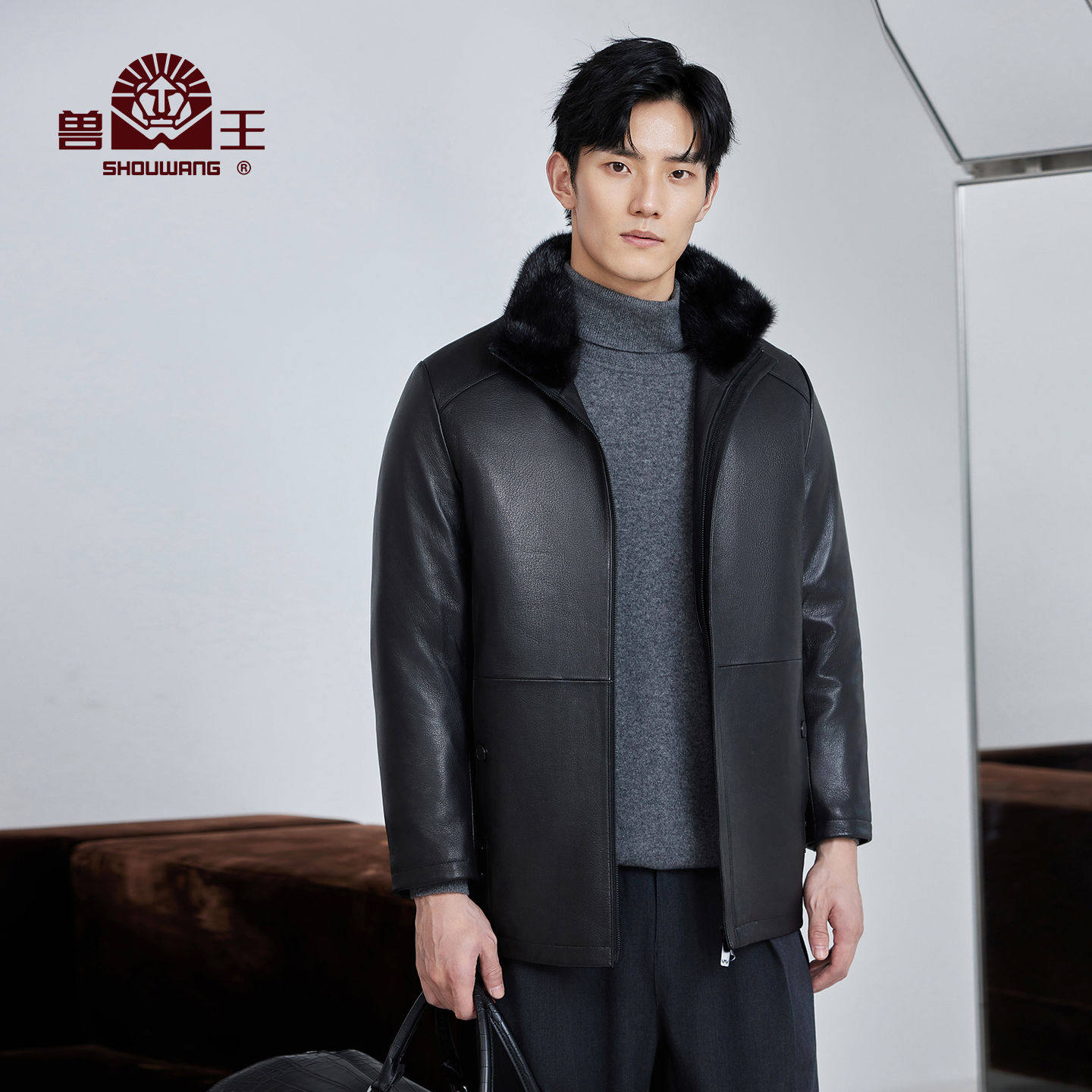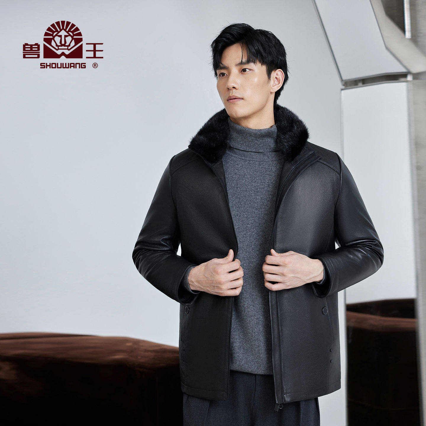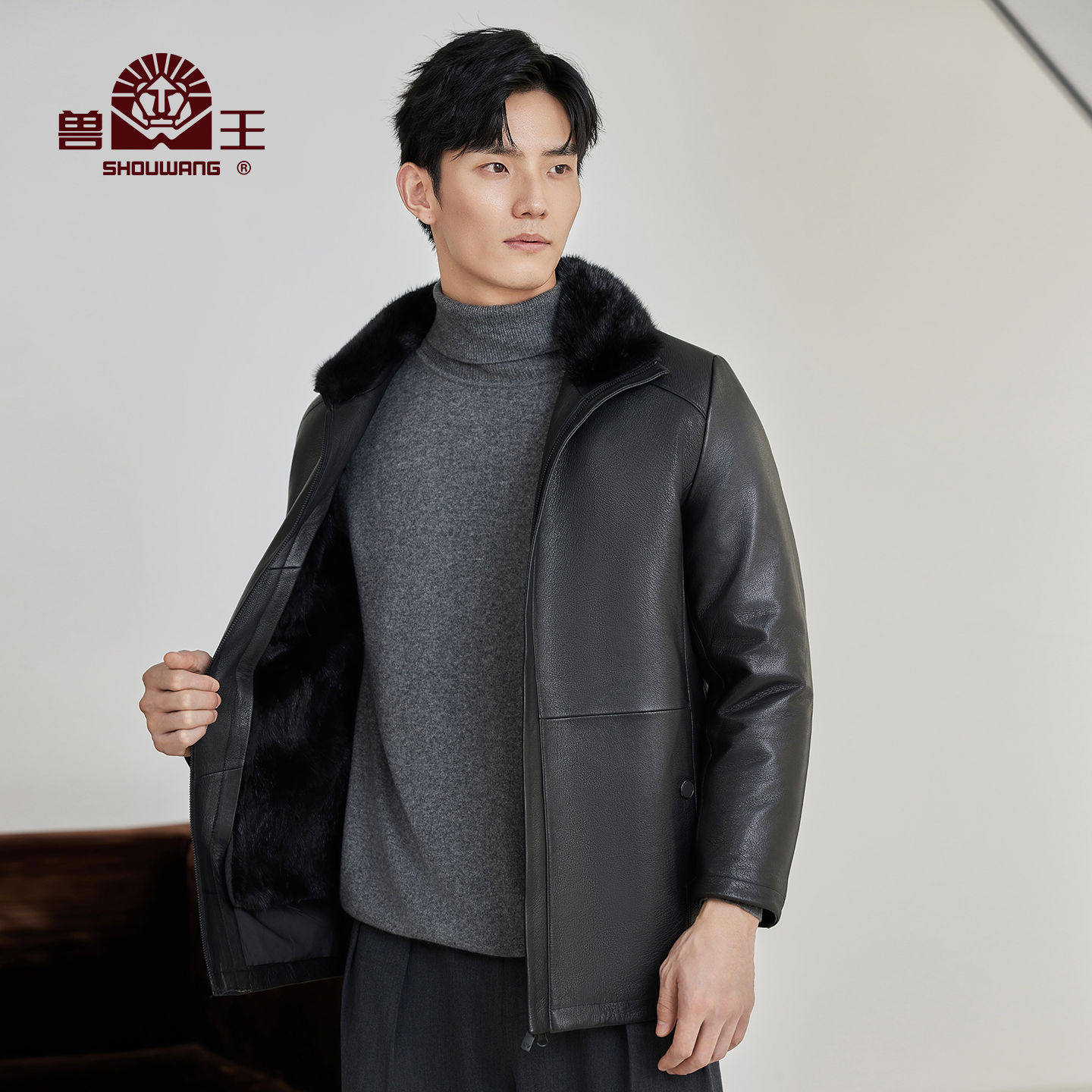 #兽王皮毛一体外套 #可拆卸毛领 #秋冬新款 #翻领真皮皮衣 #皮毛一体山羊皮外套