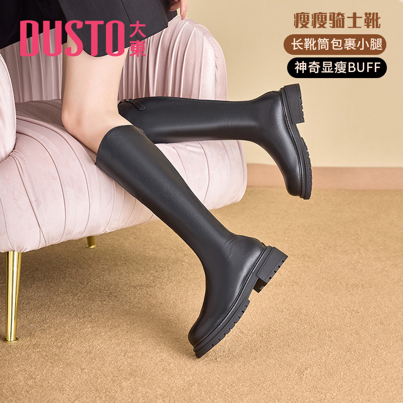 📚 大东官方长筒靴女鞋冬季时尚潮流舒适简约后拉链圆头鞋0112