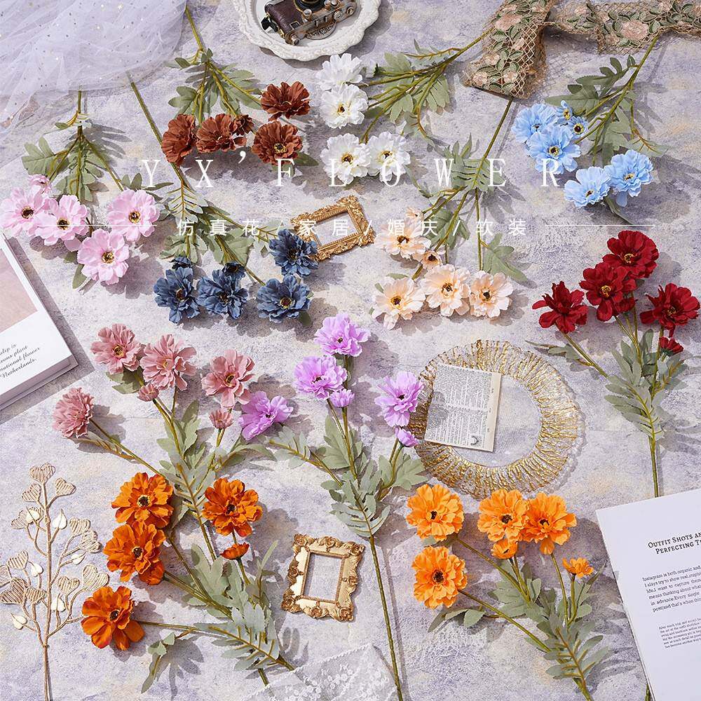 📚 天津市武清区莫奈花语工艺品厂仿真6头百日菊 太阳花现货婚庆地排