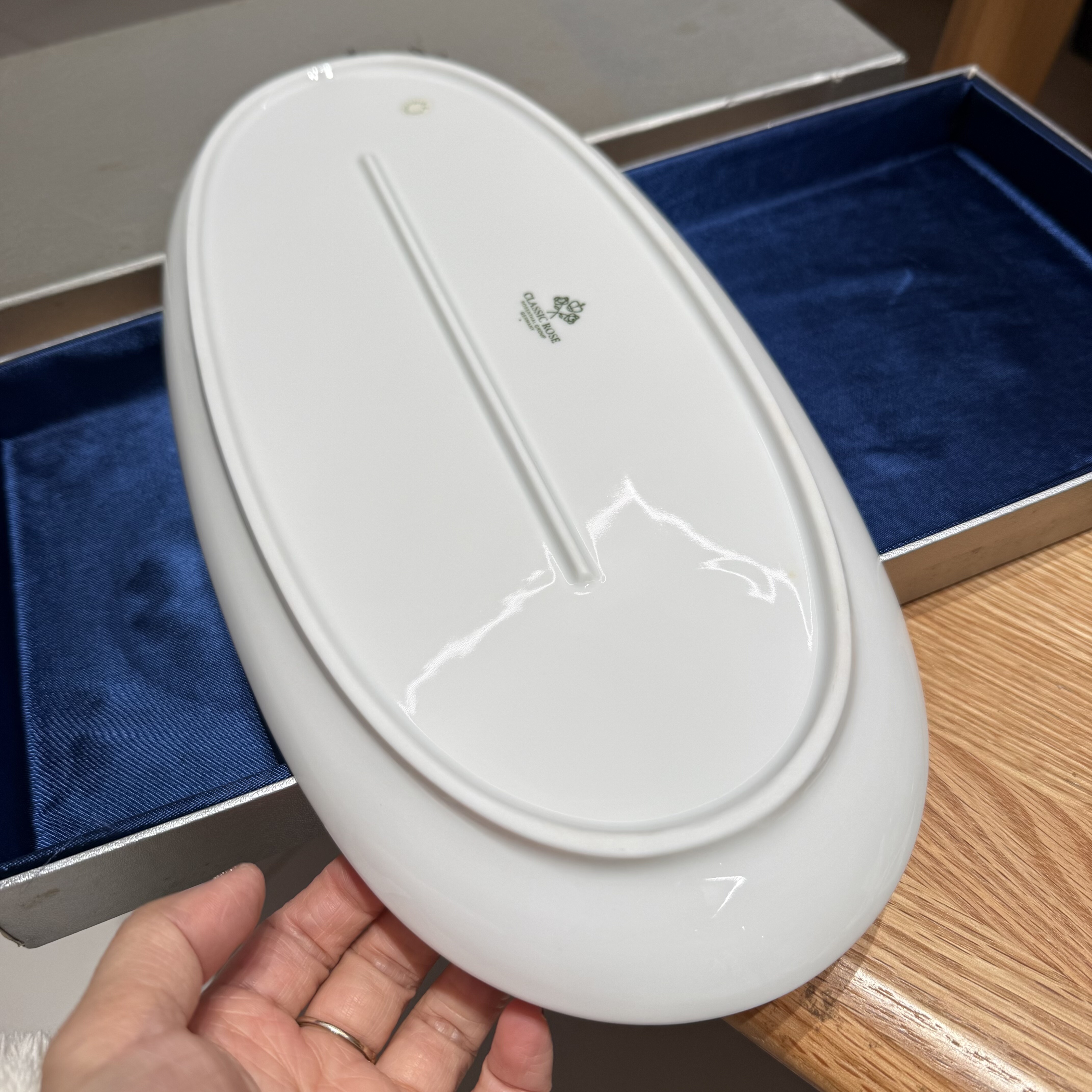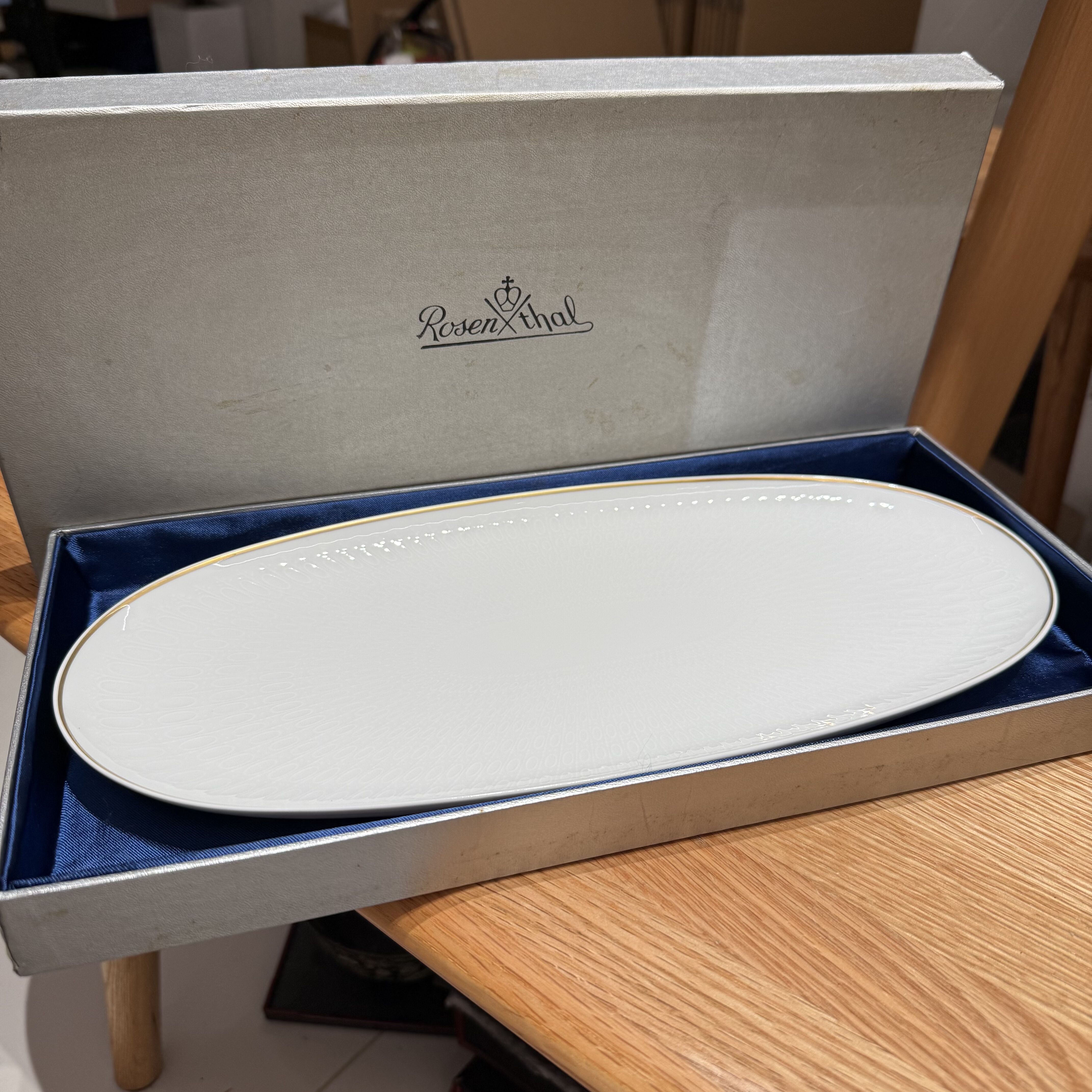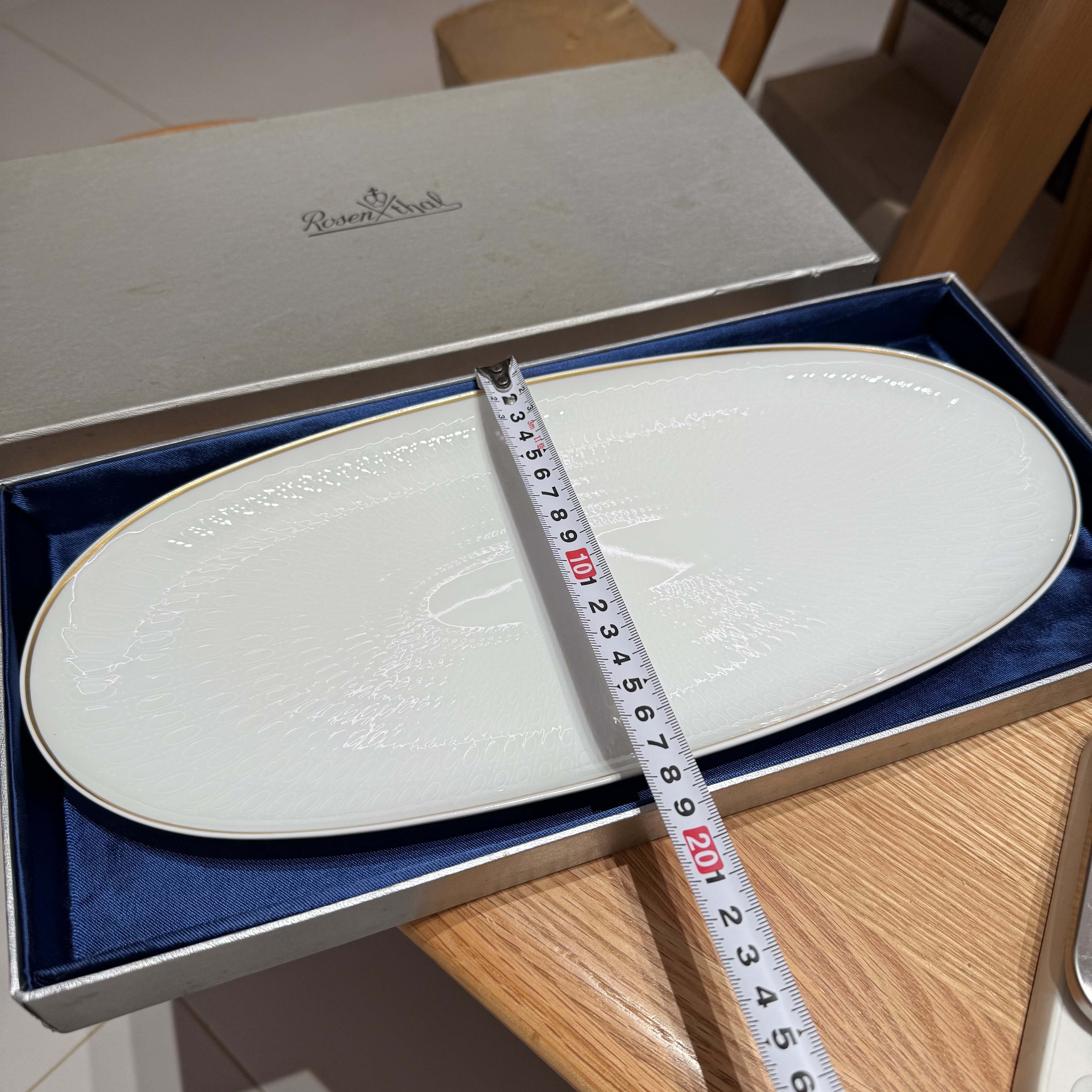 📚 德国卢臣泰Rosenthal骨瓷浮雕金边鱼盘刺身长盘36*17cm原盒全新