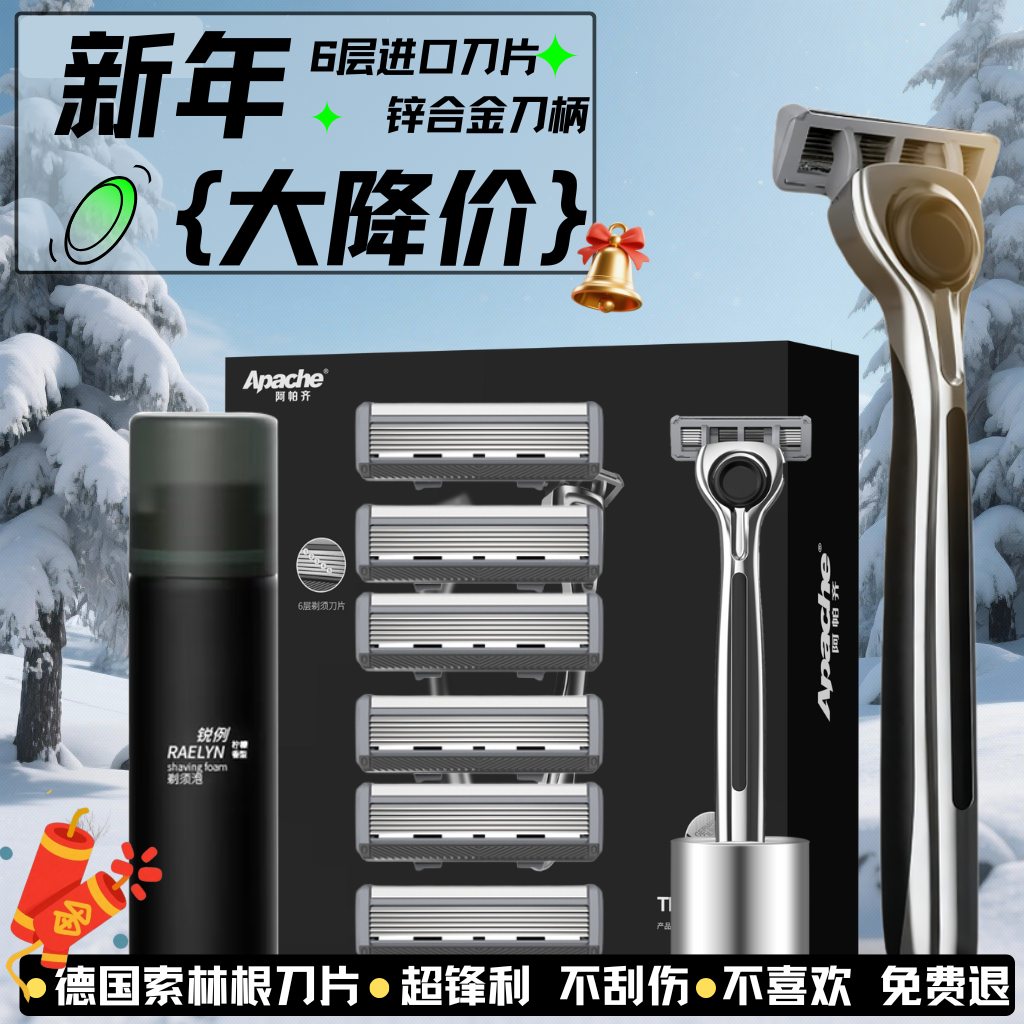 📚 apache/阿帕齐德国进口6层手动剃须刀胡子胡须刀阿帕奇刮脸礼盒装