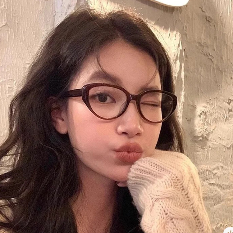 📚 2024新款眼镜框茶色框猫眼高级感女方圆脸显瘦素颜近视防蓝光镜潮