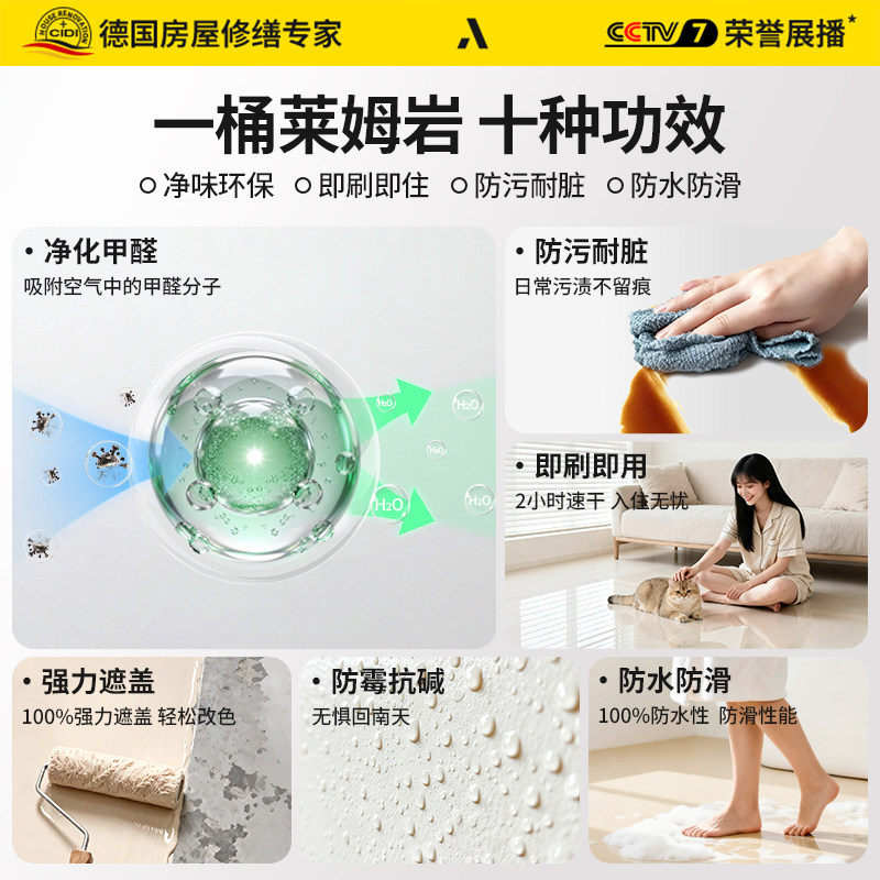 📚 德国莱姆岩十效合一地坪漆家用室内水泥地面专用自流平地板油漆