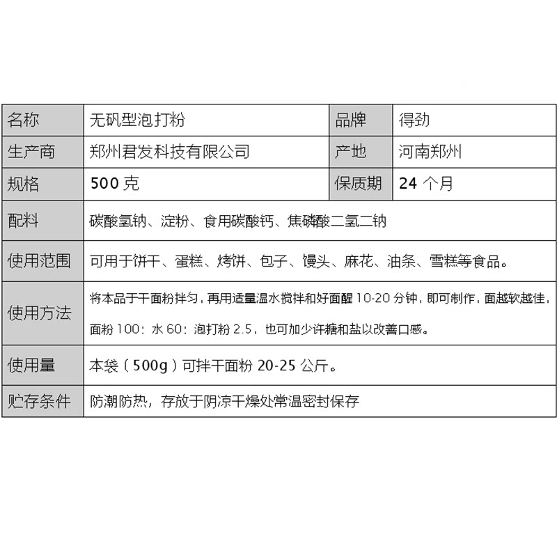 📚 君发 无矾型得劲泡打粉 500g家用馒头包子油条膨松剂蛋糕烘焙原料