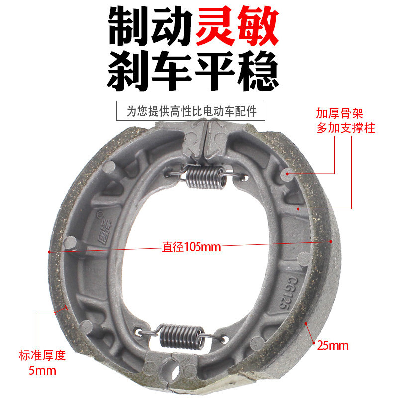 📚 唐泽电动车刹车片110鼓刹片 刹车蹄块 耐磨刹车皮通用CG125刹车块