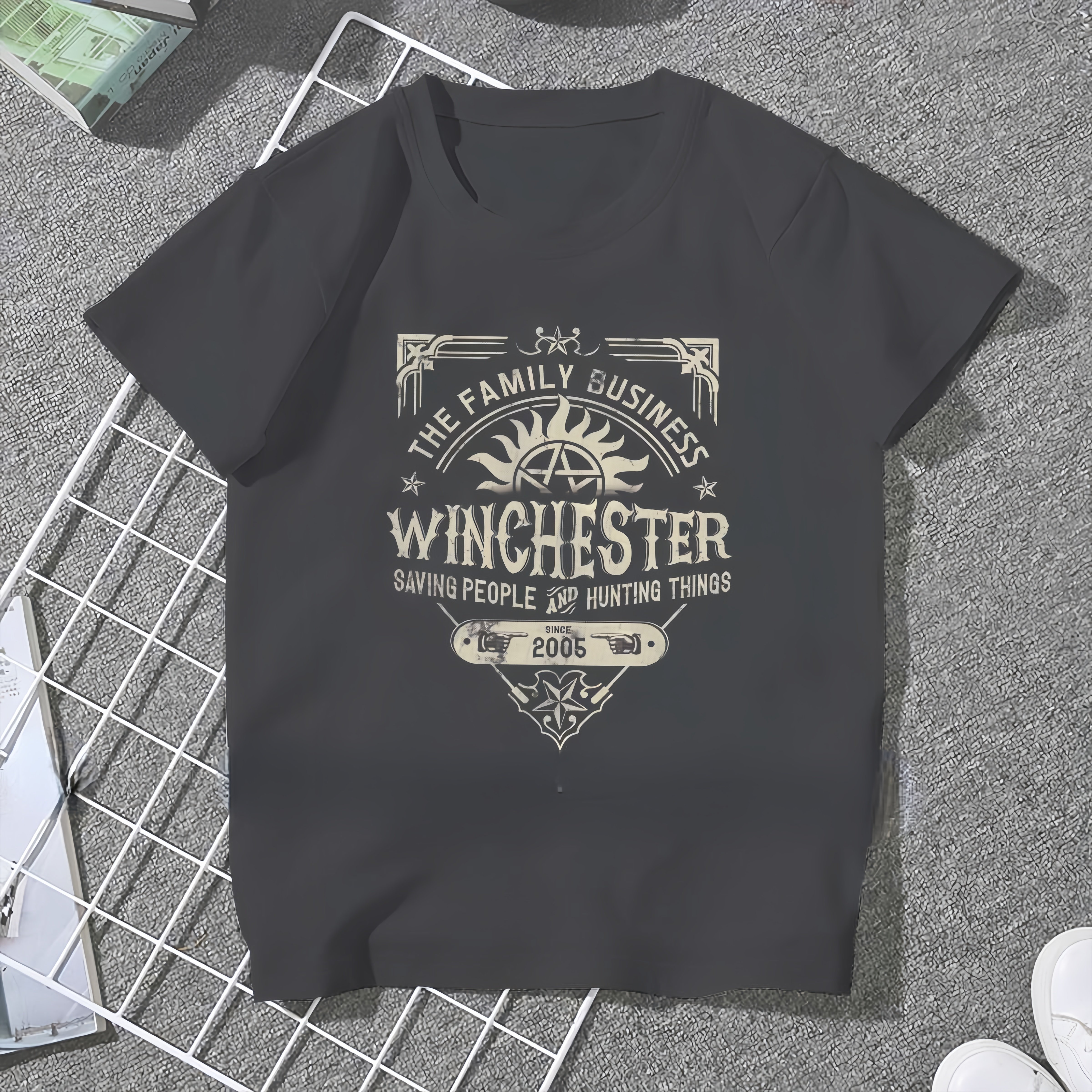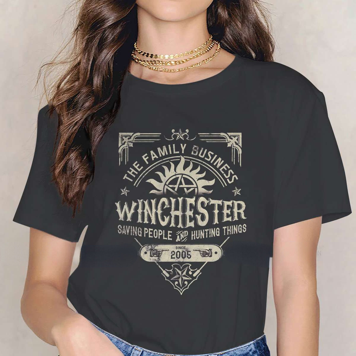 📚 邪恶力量温彻斯特女孩supernatural复古印花短袖黑色棉T恤spn周边