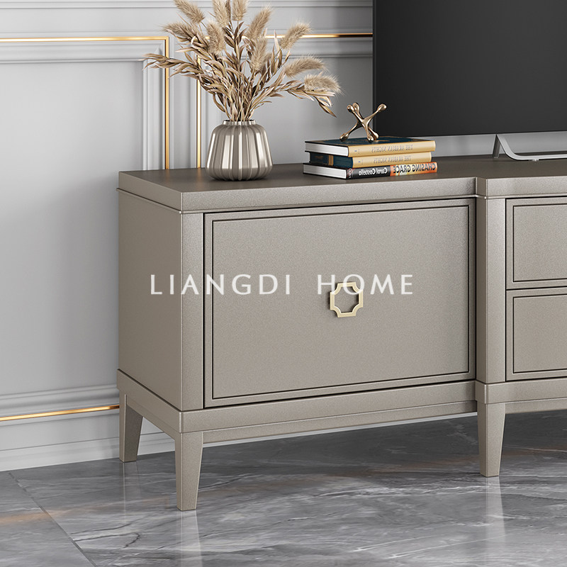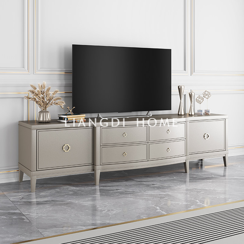📚 美式实木电视柜简约小户型客厅香槟色茶几电视柜组合地柜