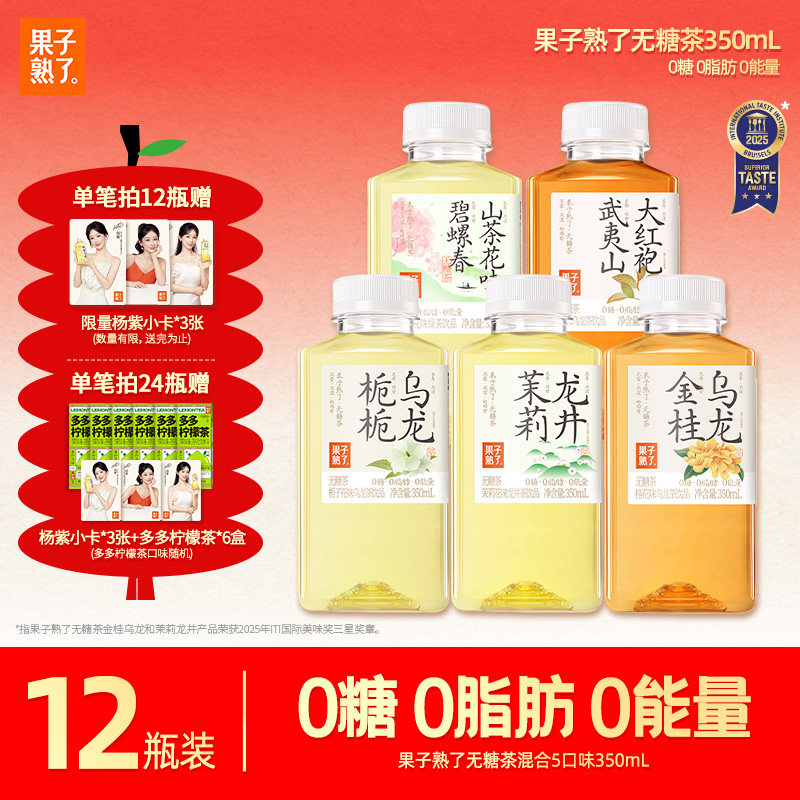 📚 果子熟了无糖茶金桂乌龙龙井无糖茶0糖0卡0脂350ml栀栀乌龙饮料