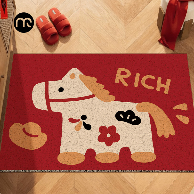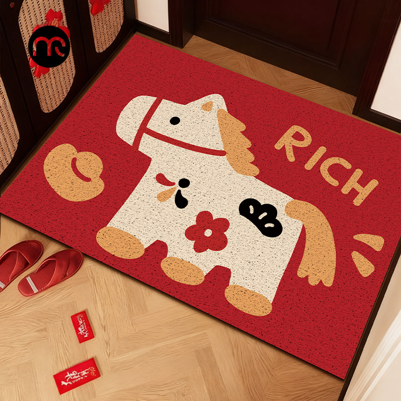 📚 2026家用喜庆防滑玄关脚垫马年地垫红色入户门垫耐脏免洗pvc地毯