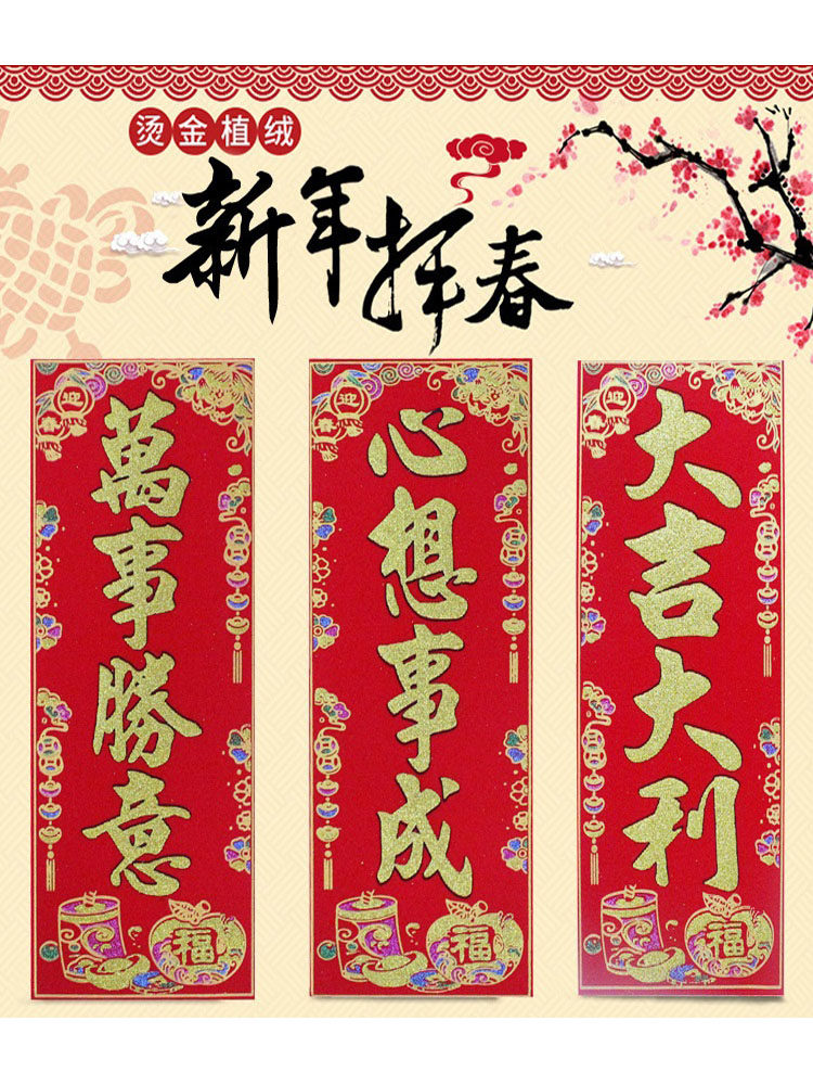 📚 五福临门门贴开门大吉春挥横批春生意兴隆贴纸出入平安新植绒绒面