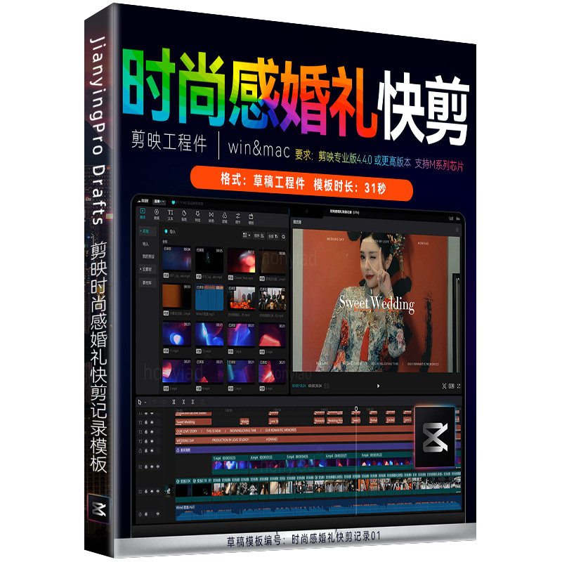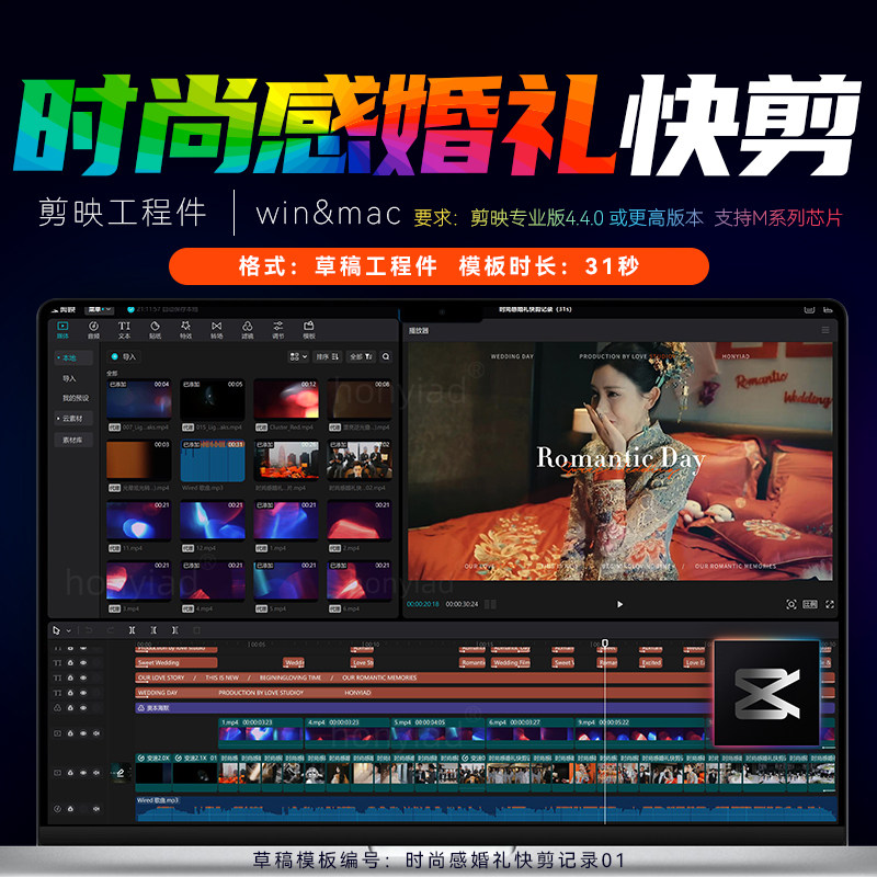 📚 31秒剪映快剪时尚感婚礼模板剪影预告模板MV花絮视频素材工程件M1