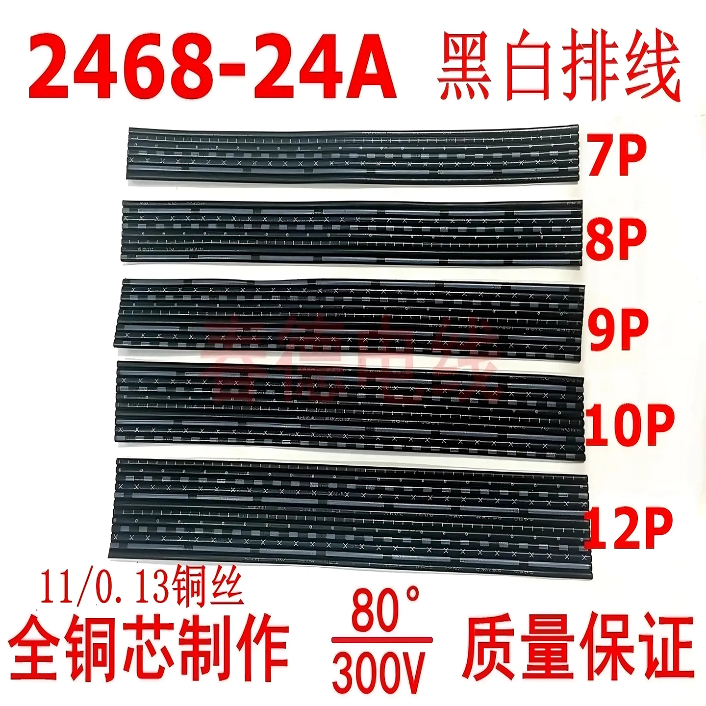 📚 2468排线24AWG黑白排线7P 8P 9P 10P12P环保镀锡铜丝端子线连接线