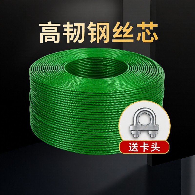 📚 包塑镀锌钢丝绳子包胶拉大棚葡萄架遮阳网带皮软晾衣绳23456810mm