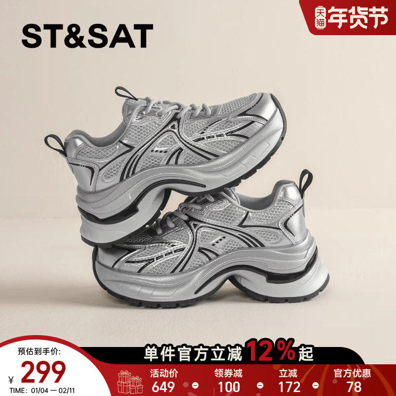 📚 星期六银色厚底6cm增高老爹鞋2025新款爆款女鞋子百搭休闲运动鞋
