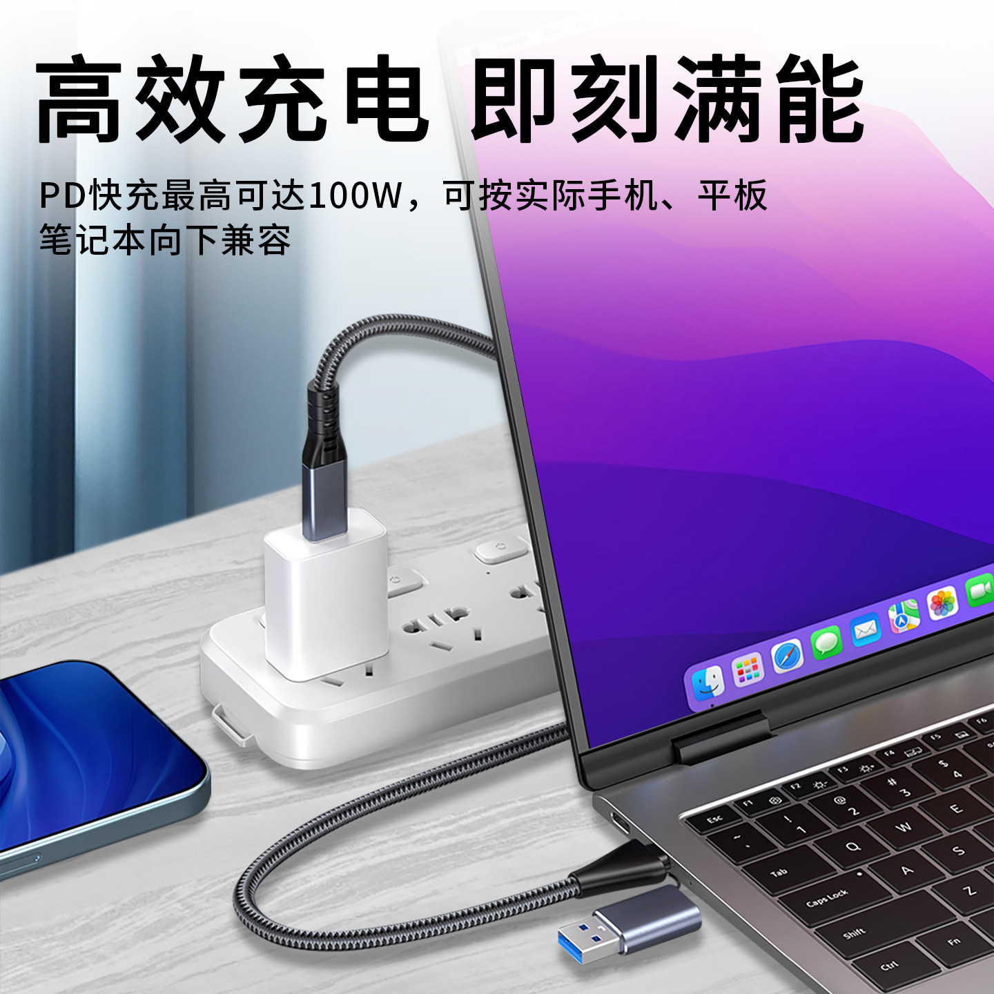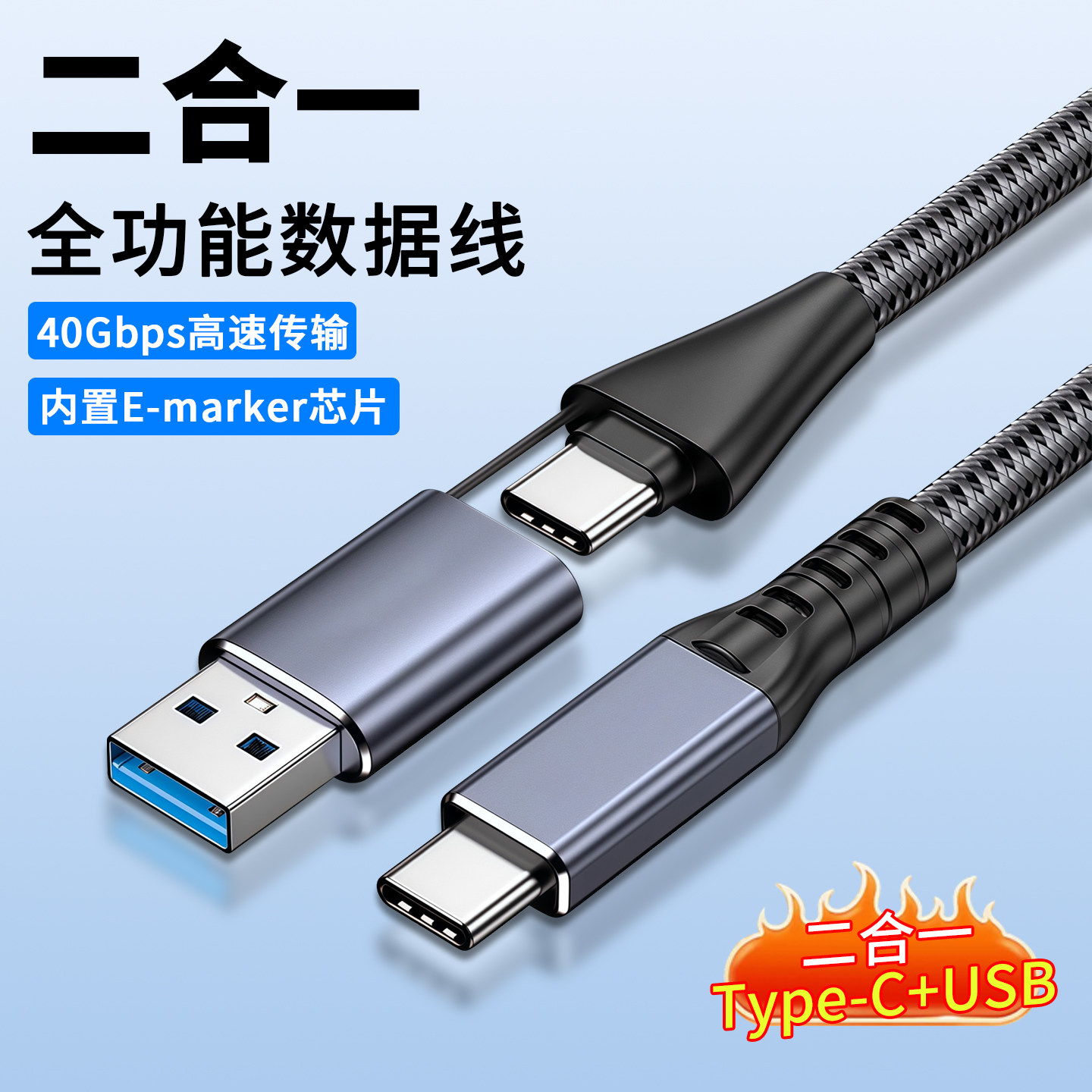 📚 USB/Type-C二合一数据线全功能PD100W快充8K4K投屏USB4.0传输带转接头手机笔记本连接移动硬盘盒显示器拓展坞
