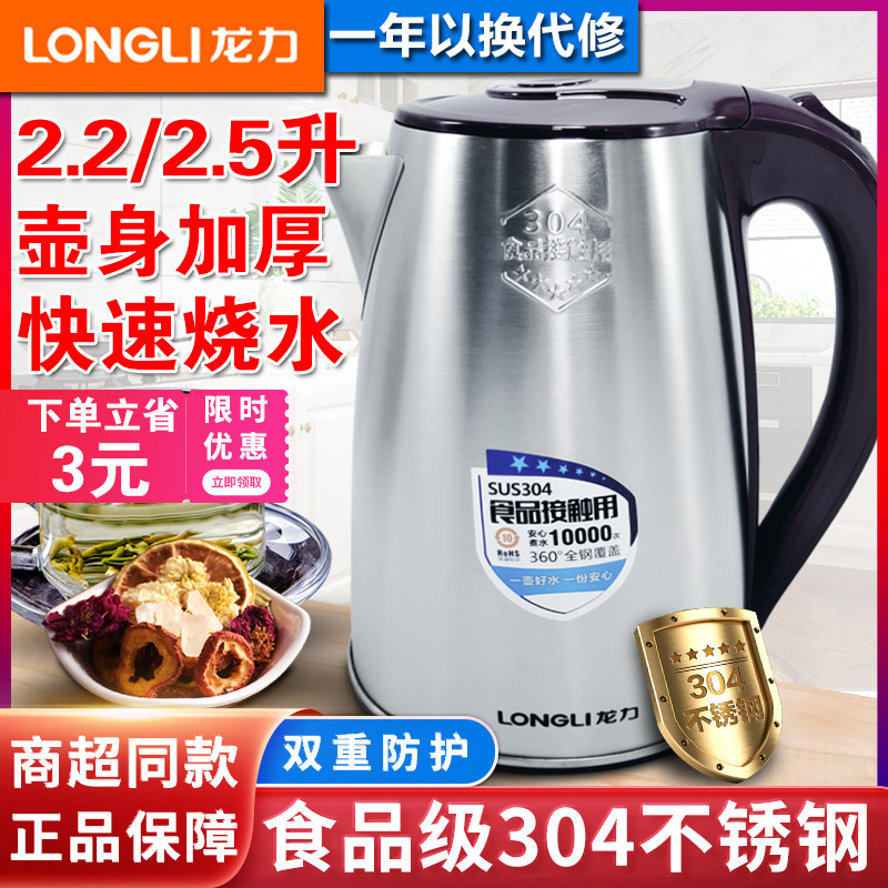 📚 龙力电热水壶家用304不锈钢8917快速自动断大容量电烧水壶2.2L升
