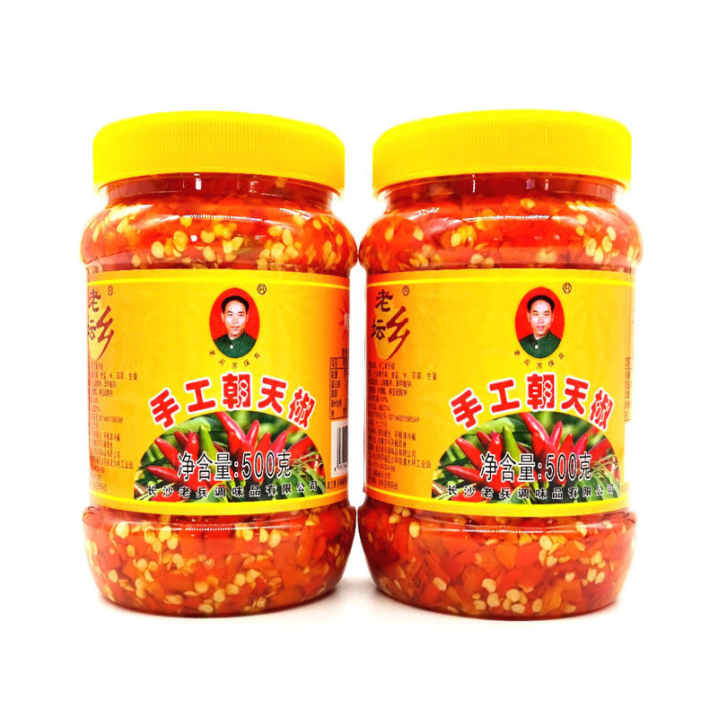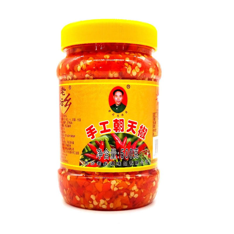 📚 湖南特产老兵手工朝天椒500g特辣鱼头剁椒农家手工自制下饭辣椒酱