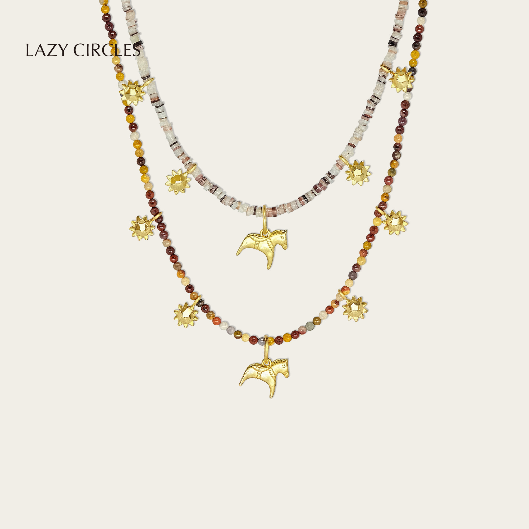 📚 董生活推荐LAZY CIRCLES逐日小马项链女太阳石贝壳串珠秋冬毛衣链