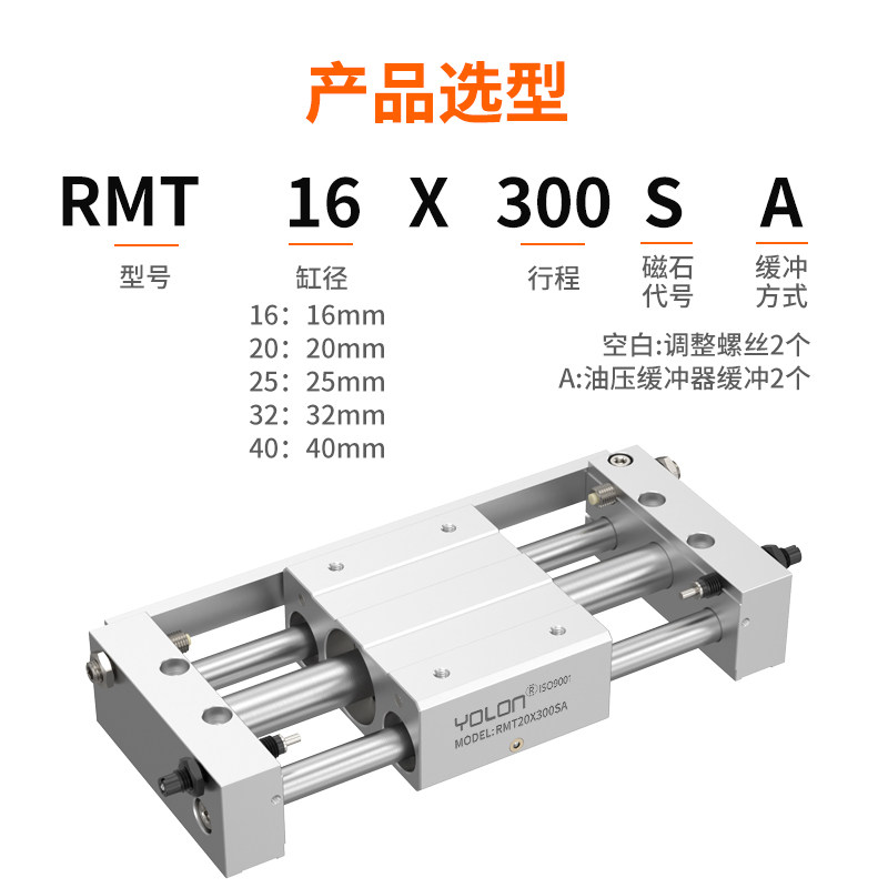 📚 RMT16磁偶式无杆气缸滑台带导轨20/25/32/40-100-300-500SA长行程