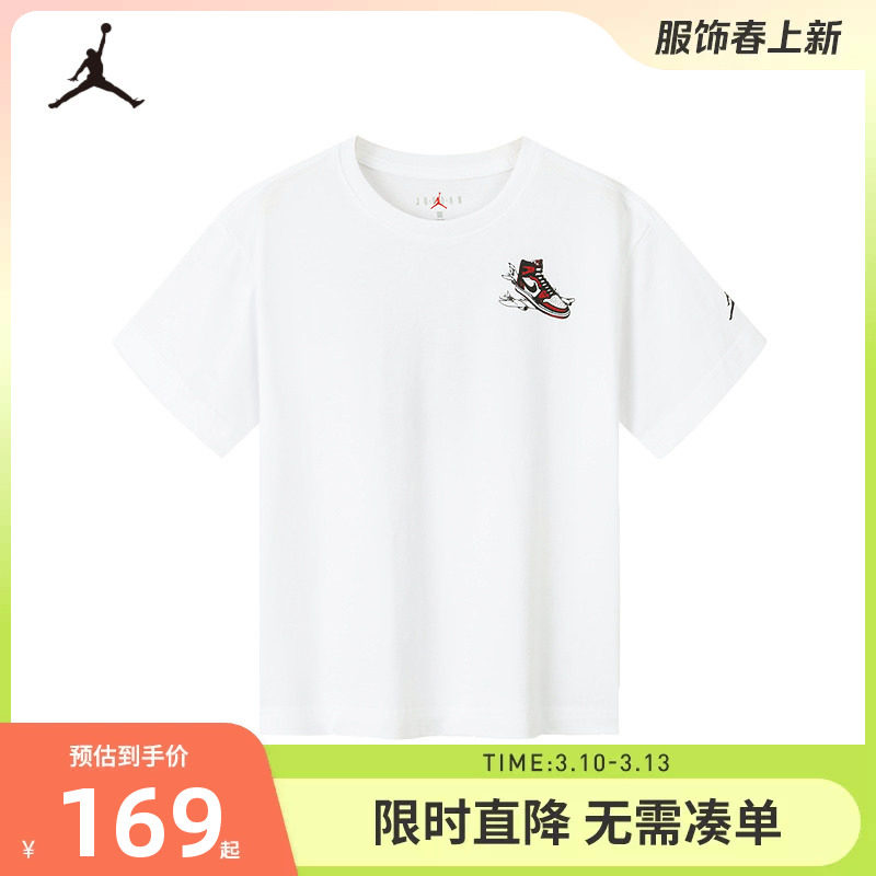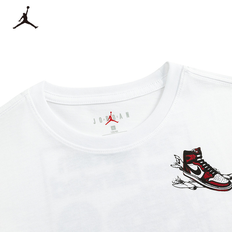 📚 Jordan童装儿童短袖男童白T恤2025夏季新款大童运动上衣JD2532018