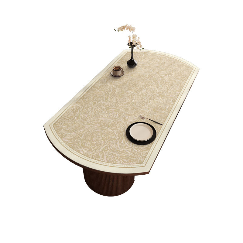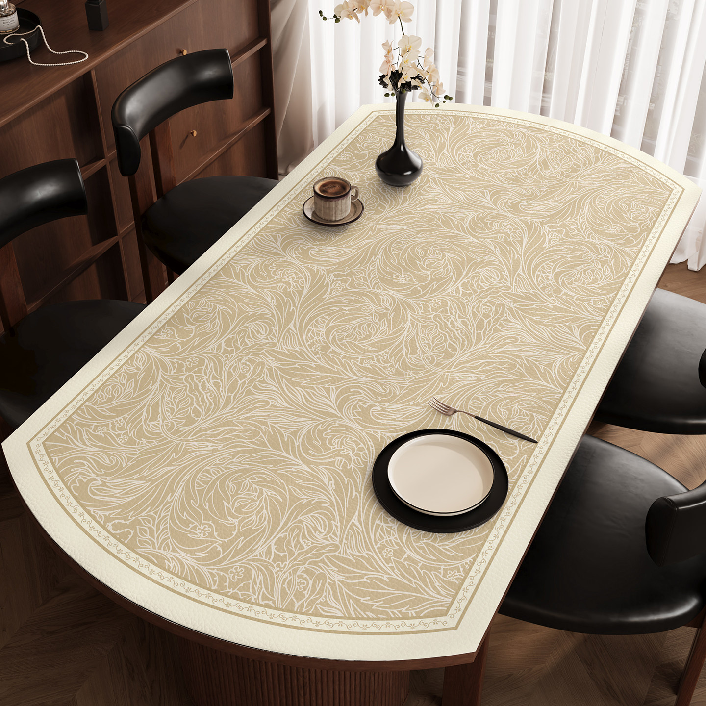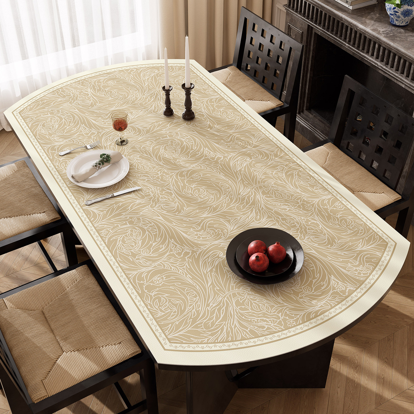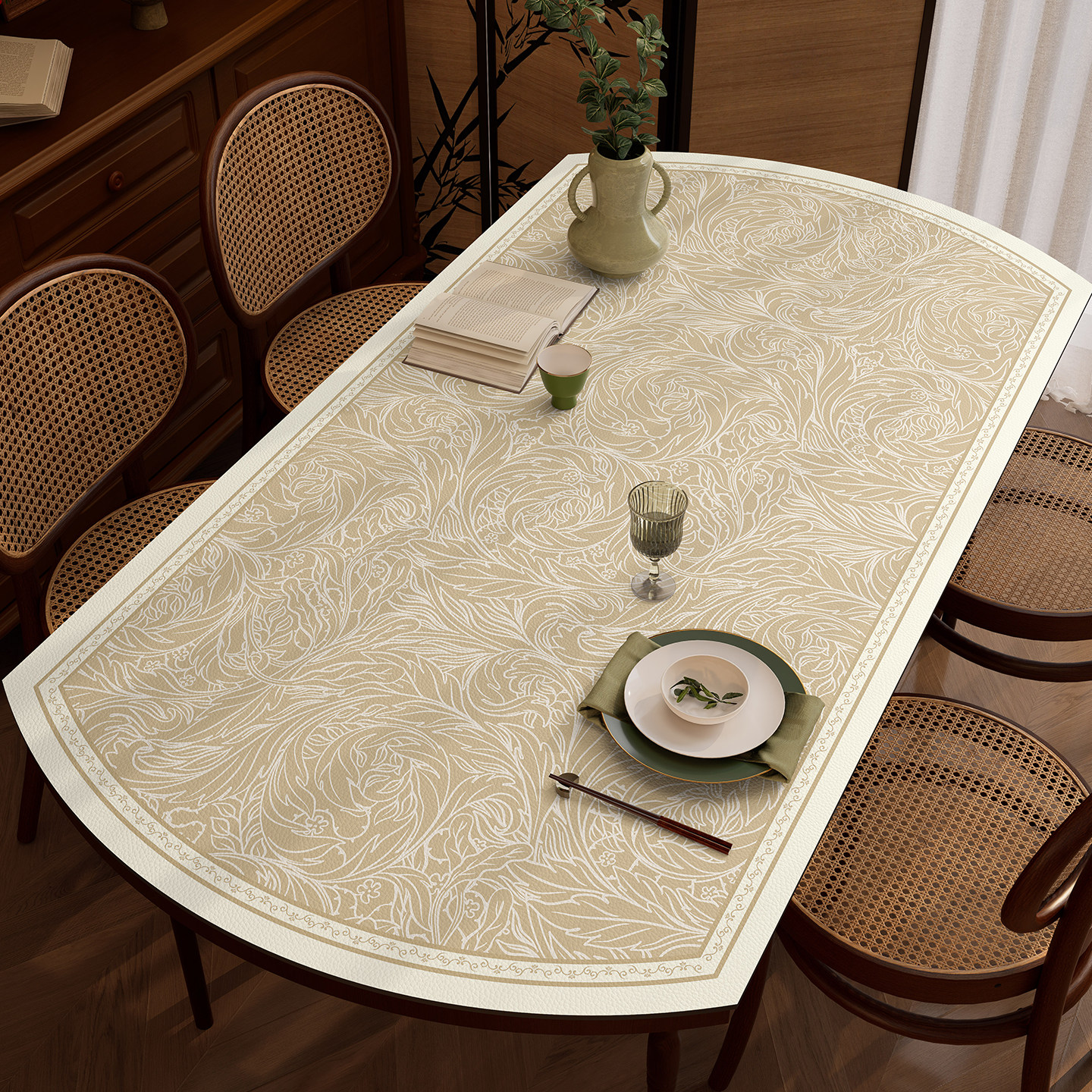 📚 中古风椭圆形桌布防水防油免洗圆弧形餐桌垫家用折叠圆桌台面垫子