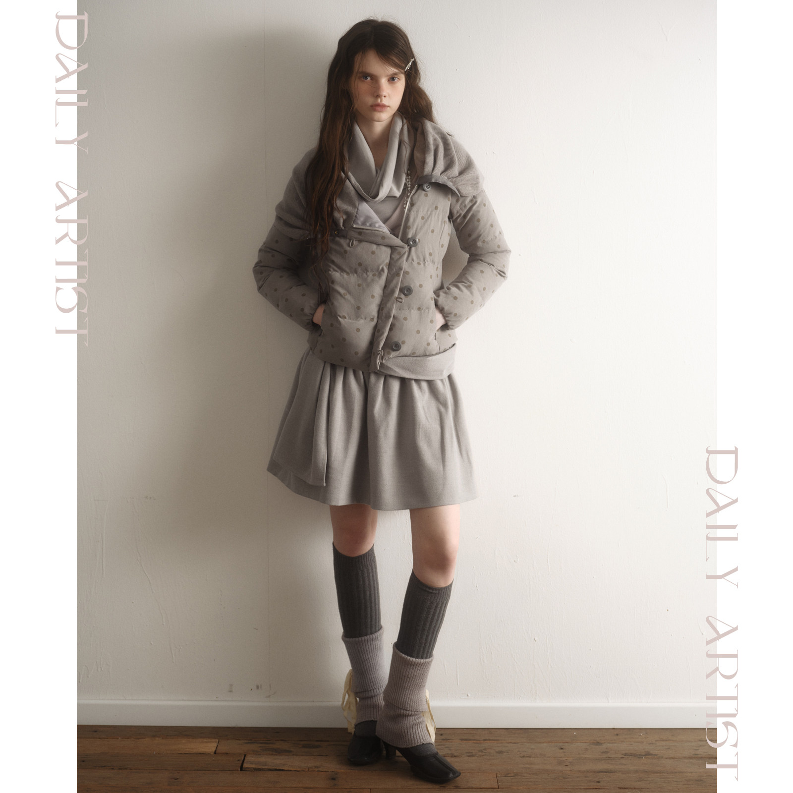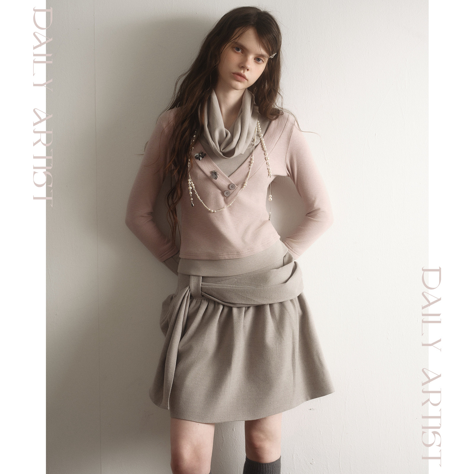 📚 今日艺术家原创雾感灰立体褶皱磨毛腰封搭片A字半身裙