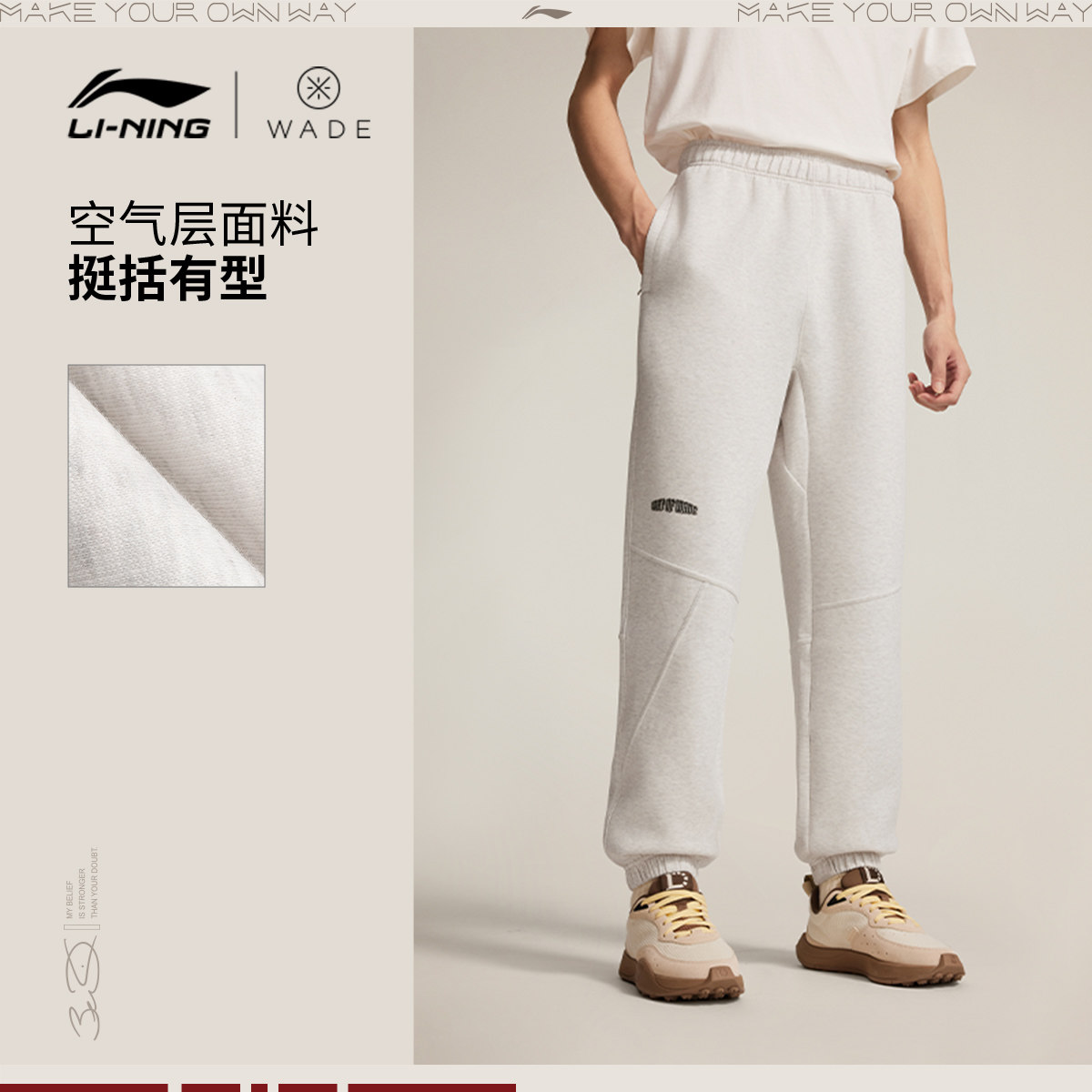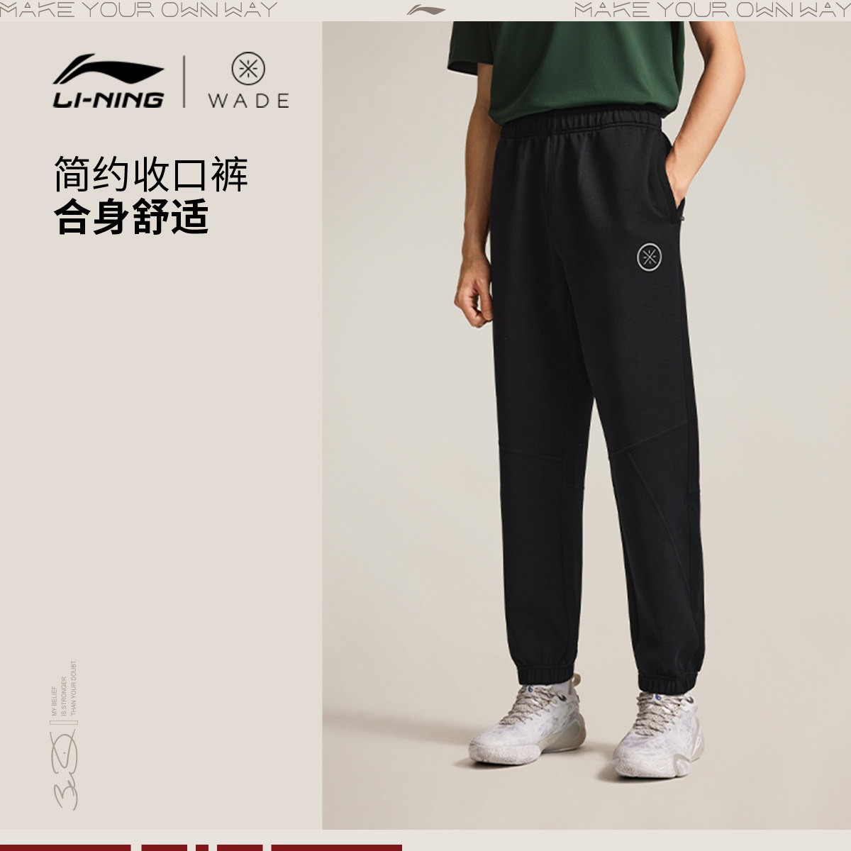 📚 李宁卫裤男士韦德篮球长裤宽松裤子春季休闲黑色束脚裤针织运动裤