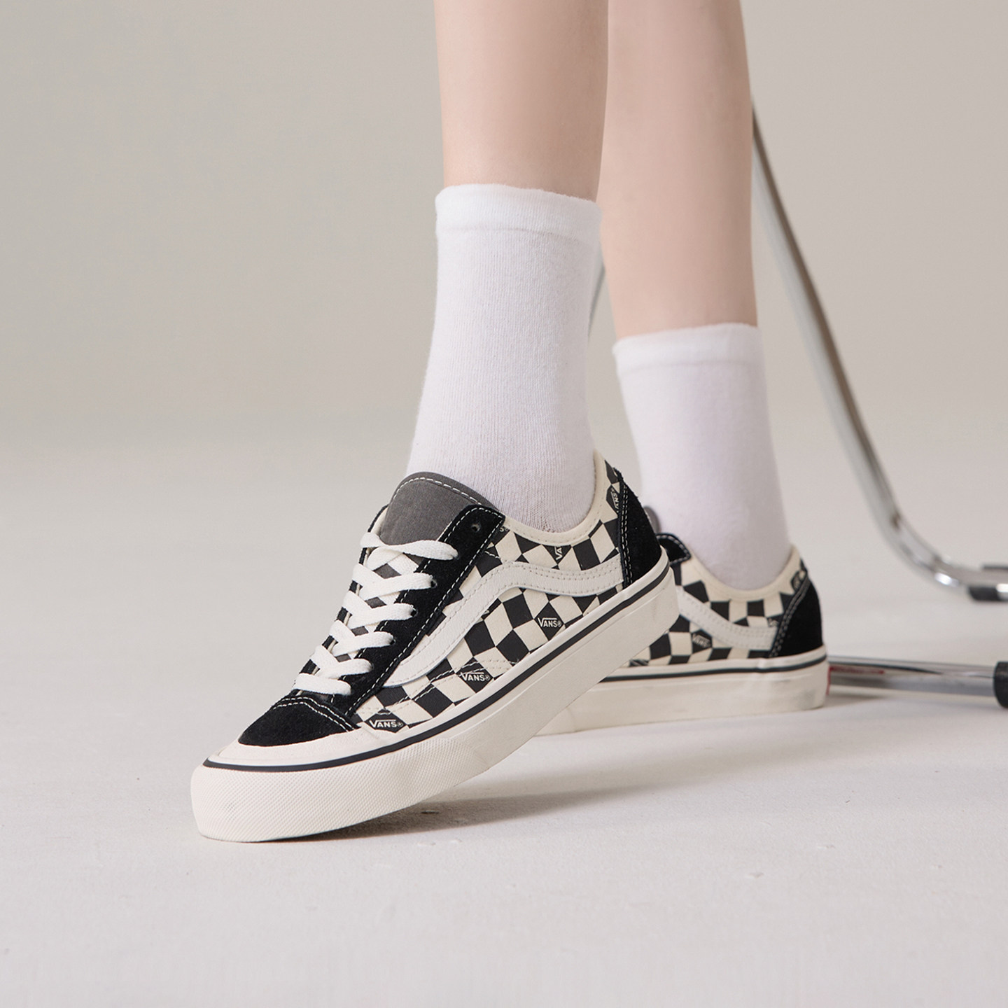 📚 VANS范斯女鞋Style136秋季经典黑白棋盘格板鞋复古低帮轻便帆布鞋