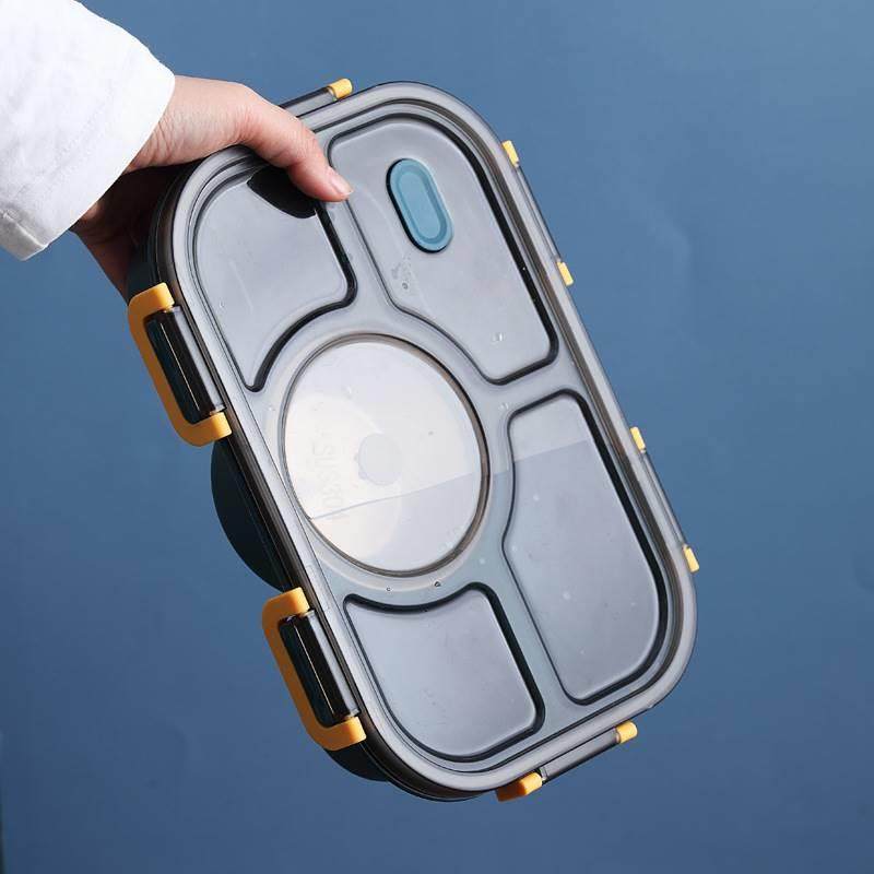 📚 网红韩式密封分格塑料饭盒五格带汤碗可微波炉加热保温学生便当盒