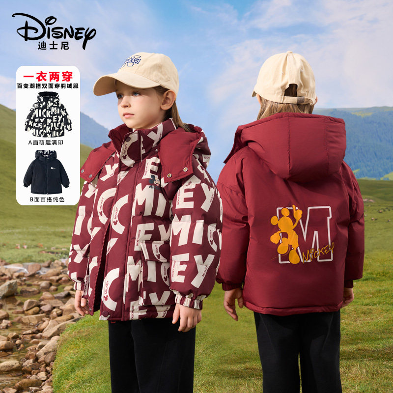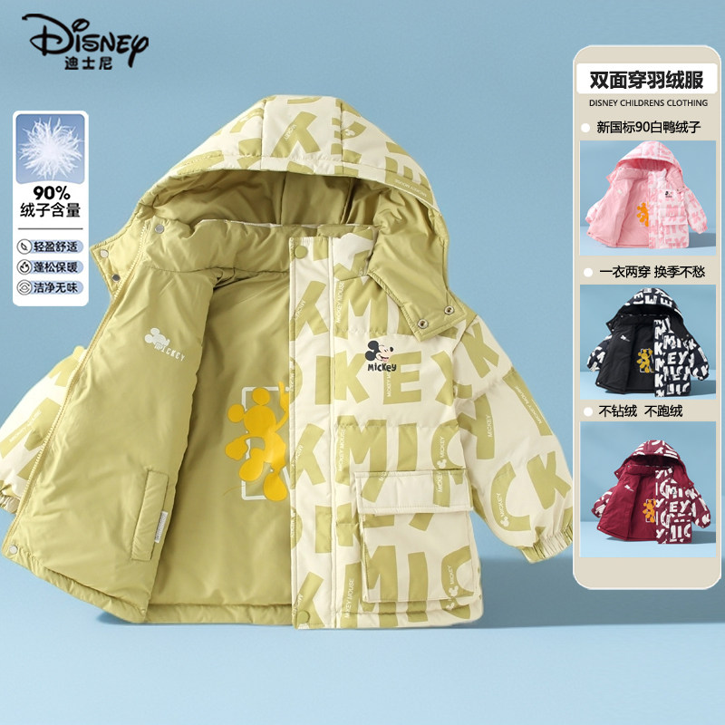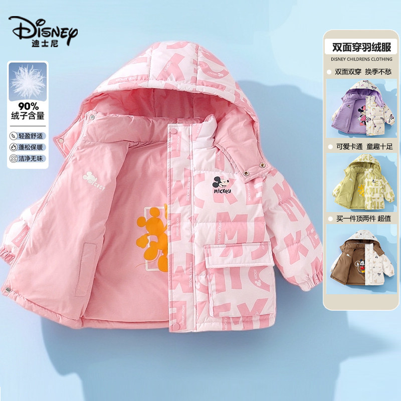 📚 正品迪士尼童装儿童轻薄羽绒服男童女童冬装小孩棉衣双面穿90鸭绒