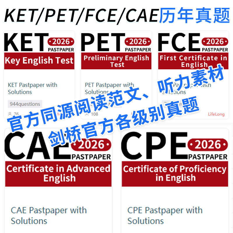 📚 KET真题官方PET听力词汇FCE阅读标准版校园CAE口语写作2026练习库