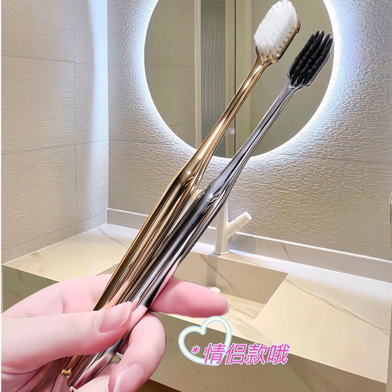 📚 金色牙刷 银色牙刷 地久高颜值软毛情侣牙刷高档家用学生男女牙刷